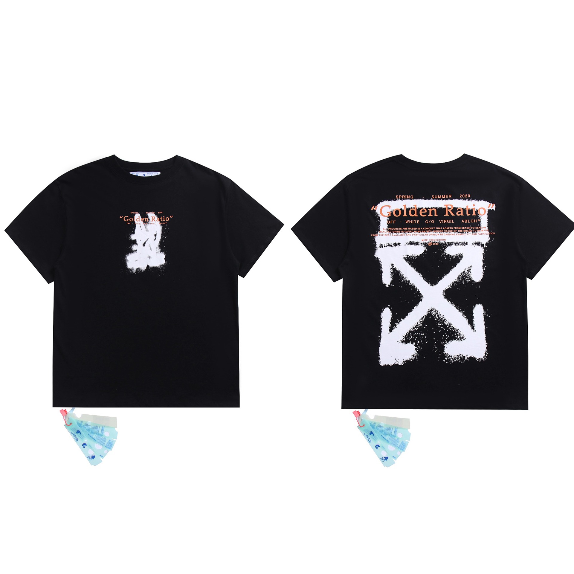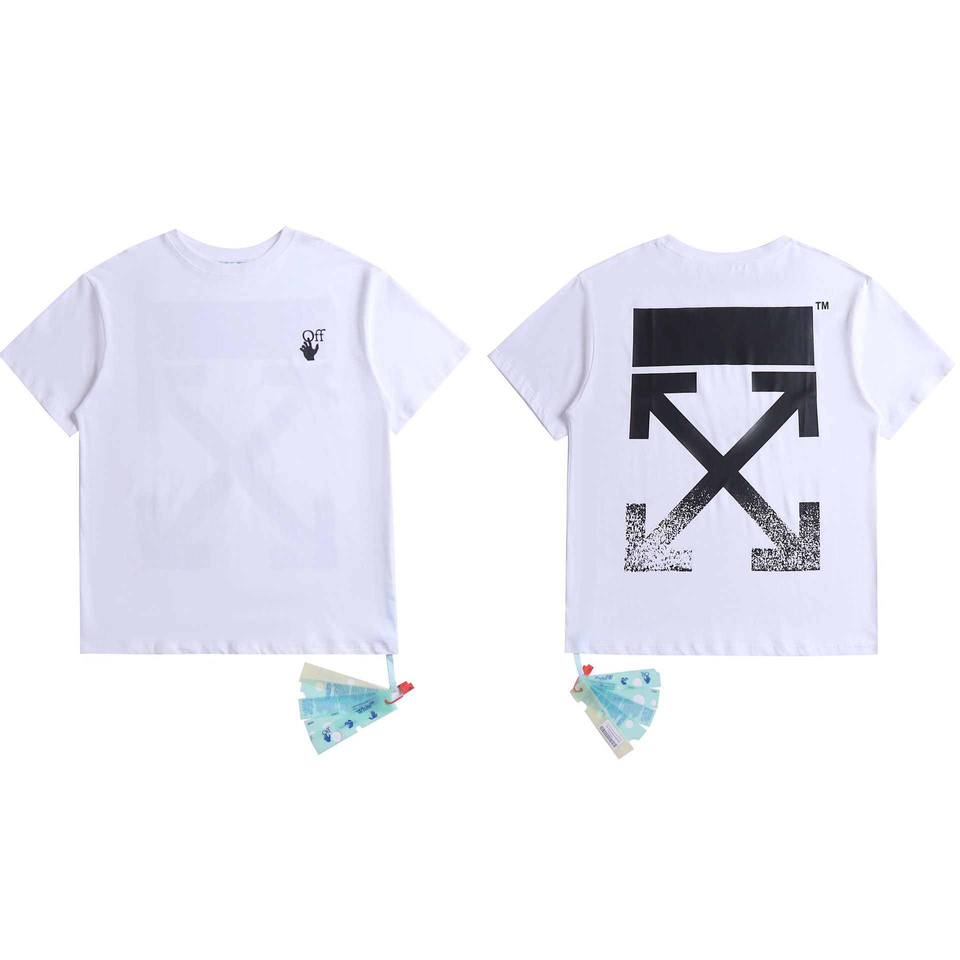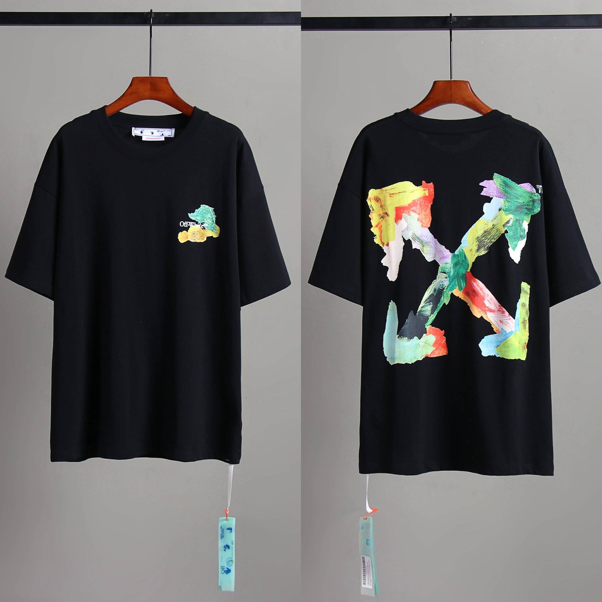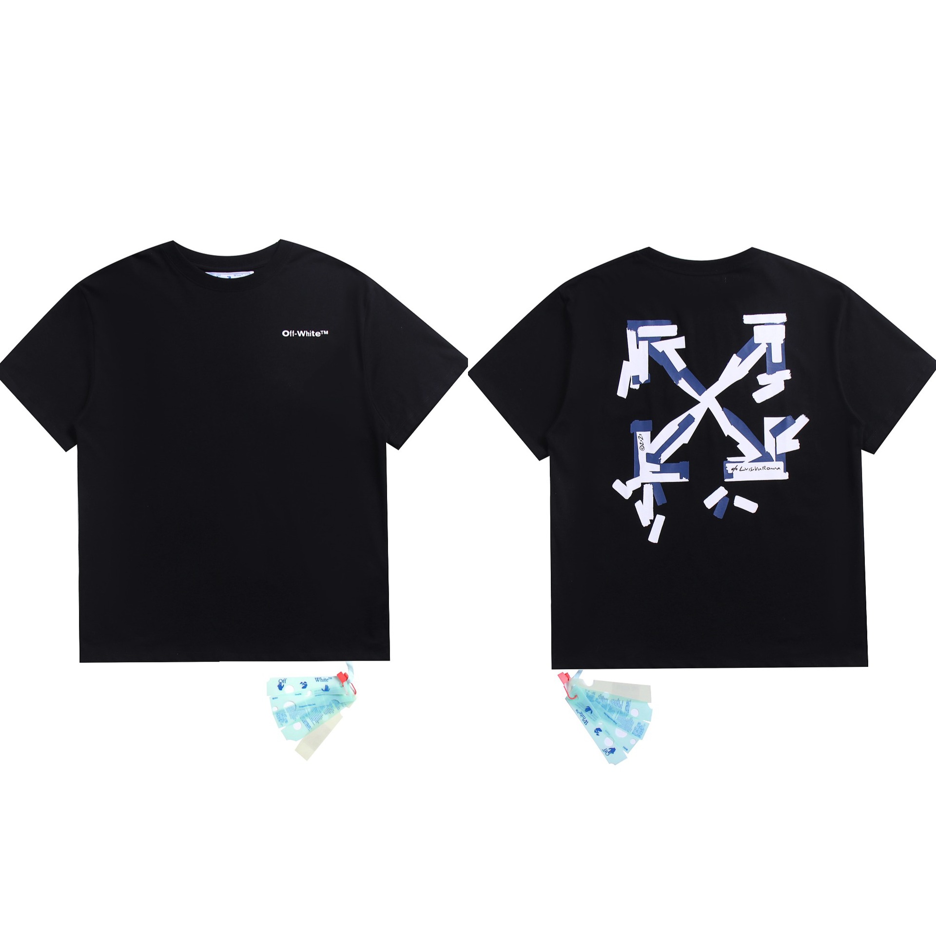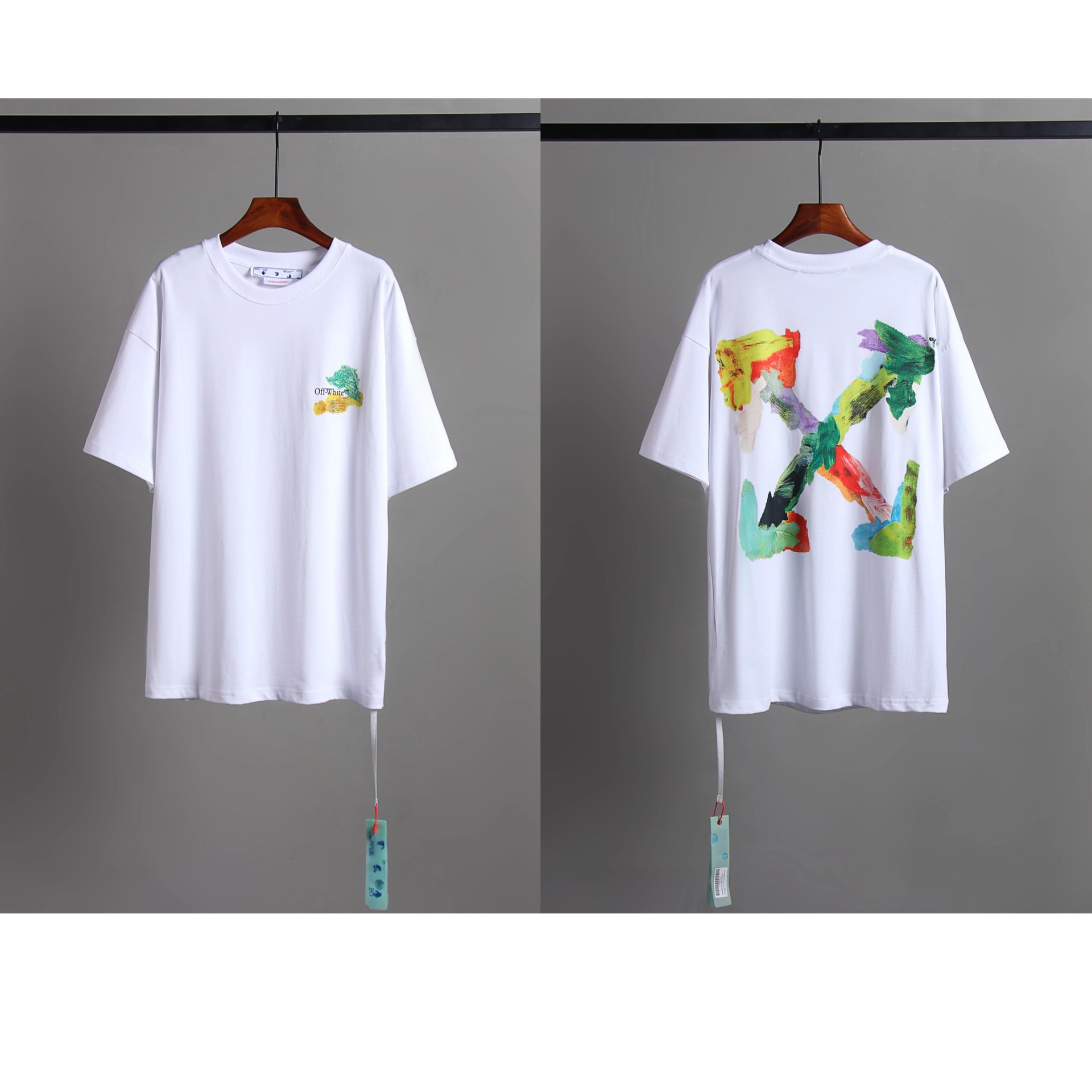 고품질 OW 자수 달 모양 배색 화살표 패턴 라운드넥 풀오버 반팔 남녀공용 라지 사이즈