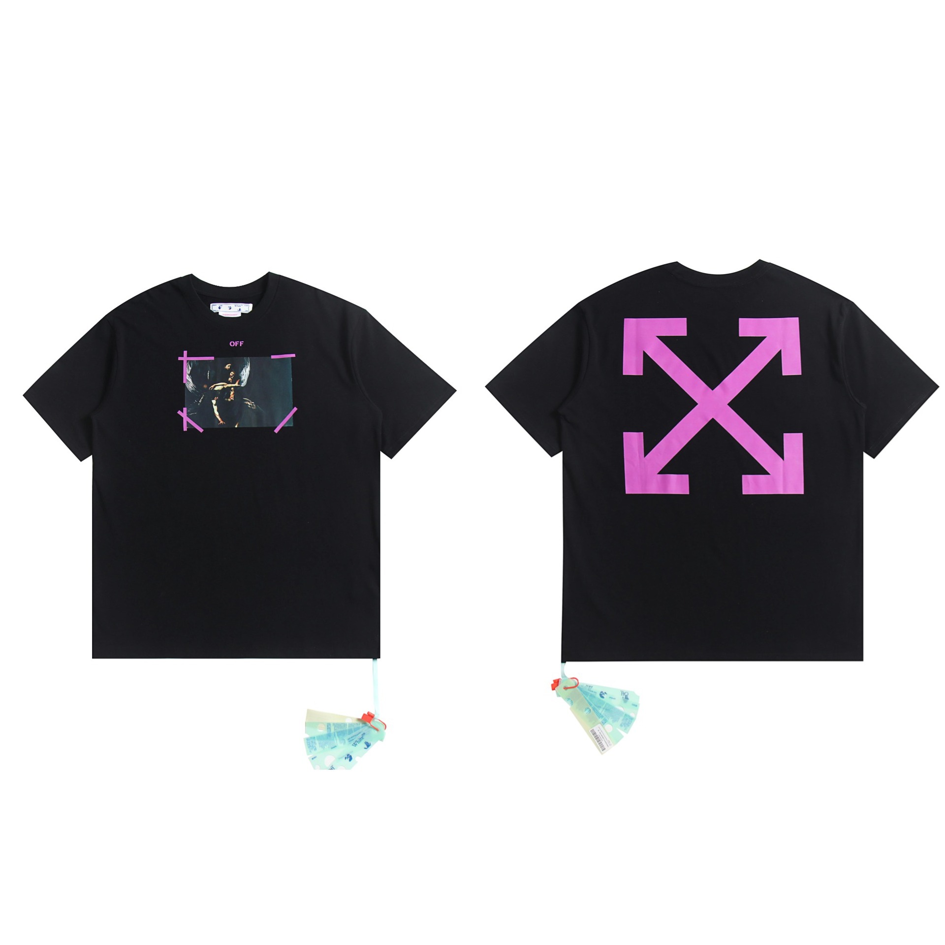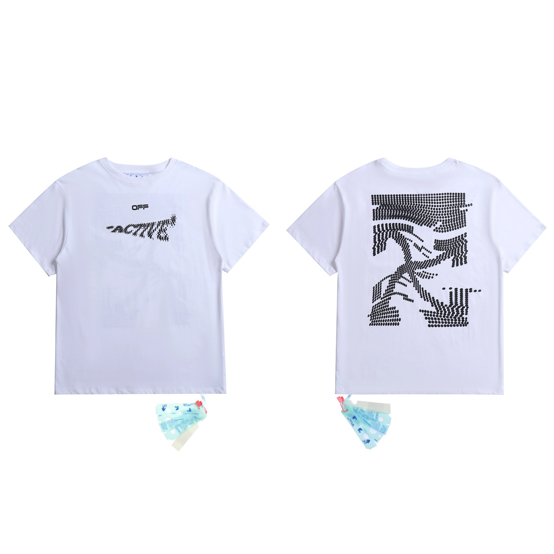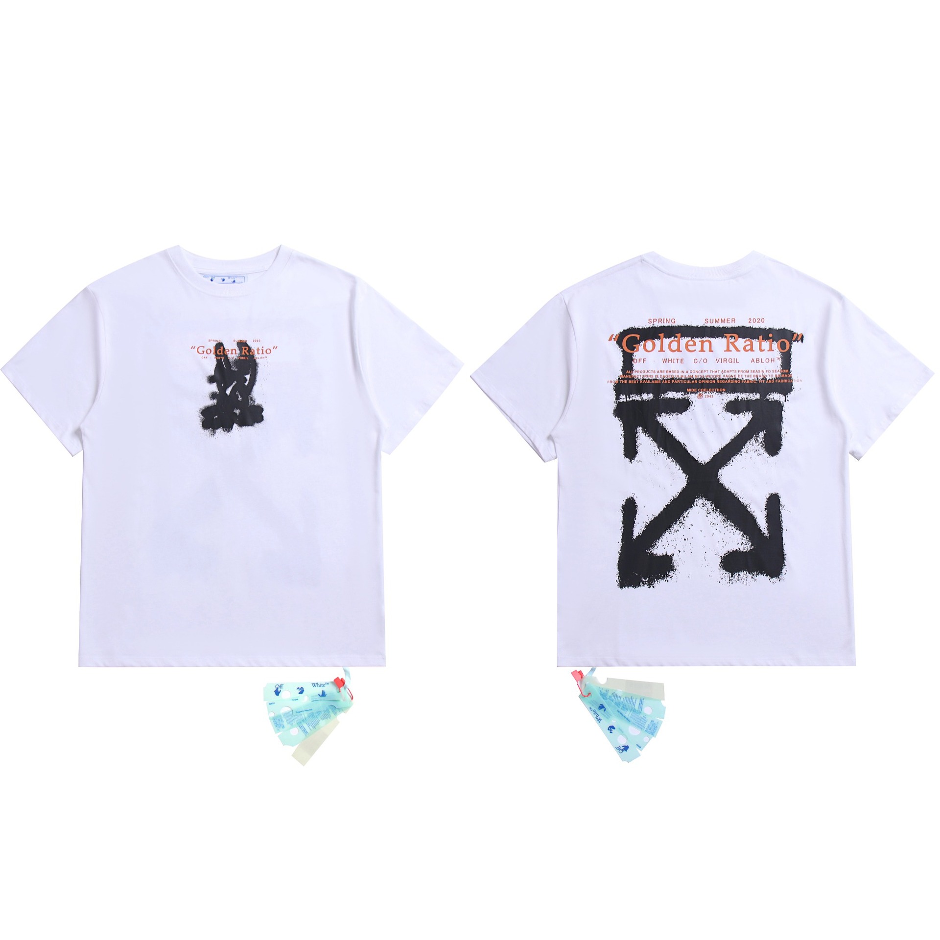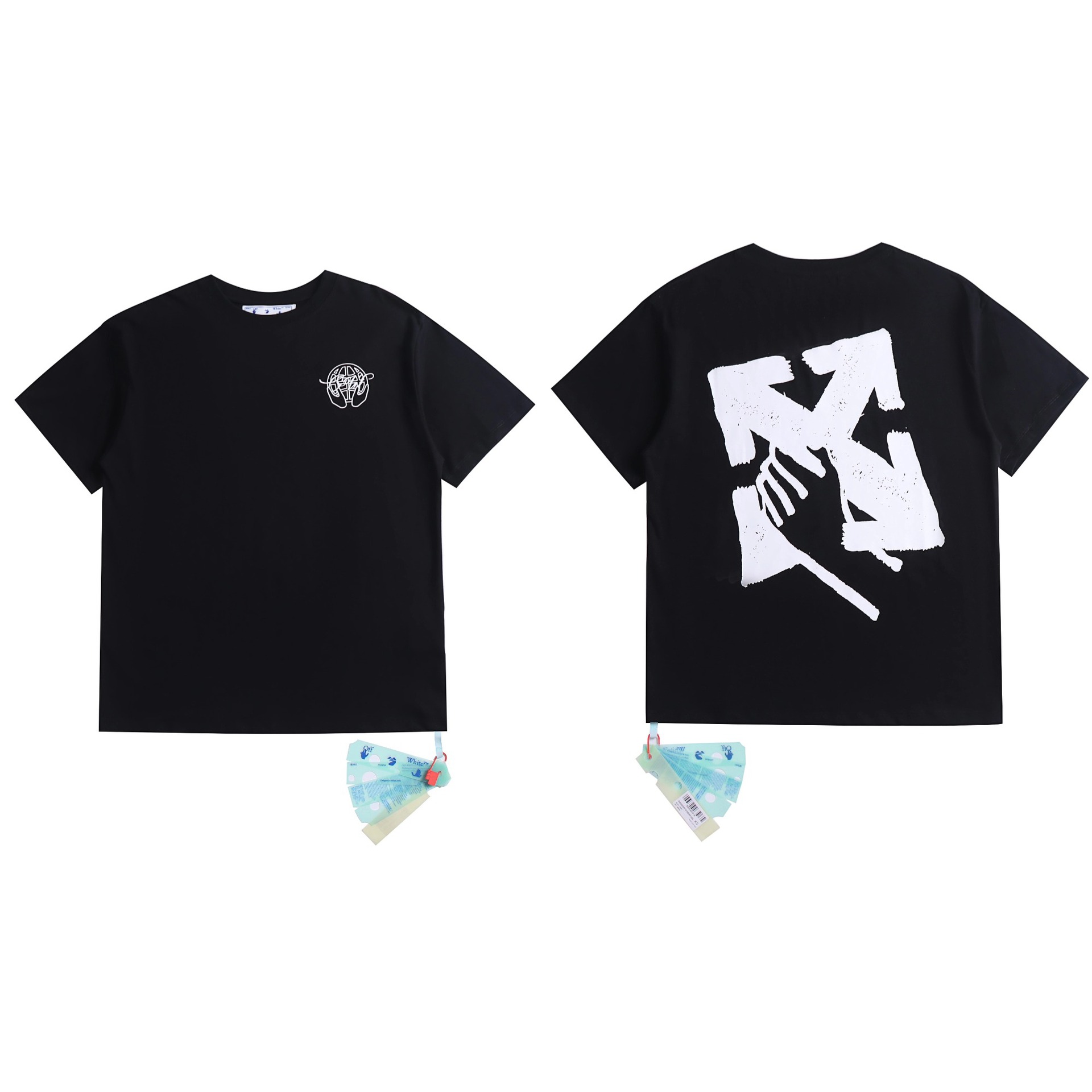 고품질 OW 자수 달 모양 배색 화살표 패턴 라운드넥 풀오버 반팔 남녀공용 라지 사이즈