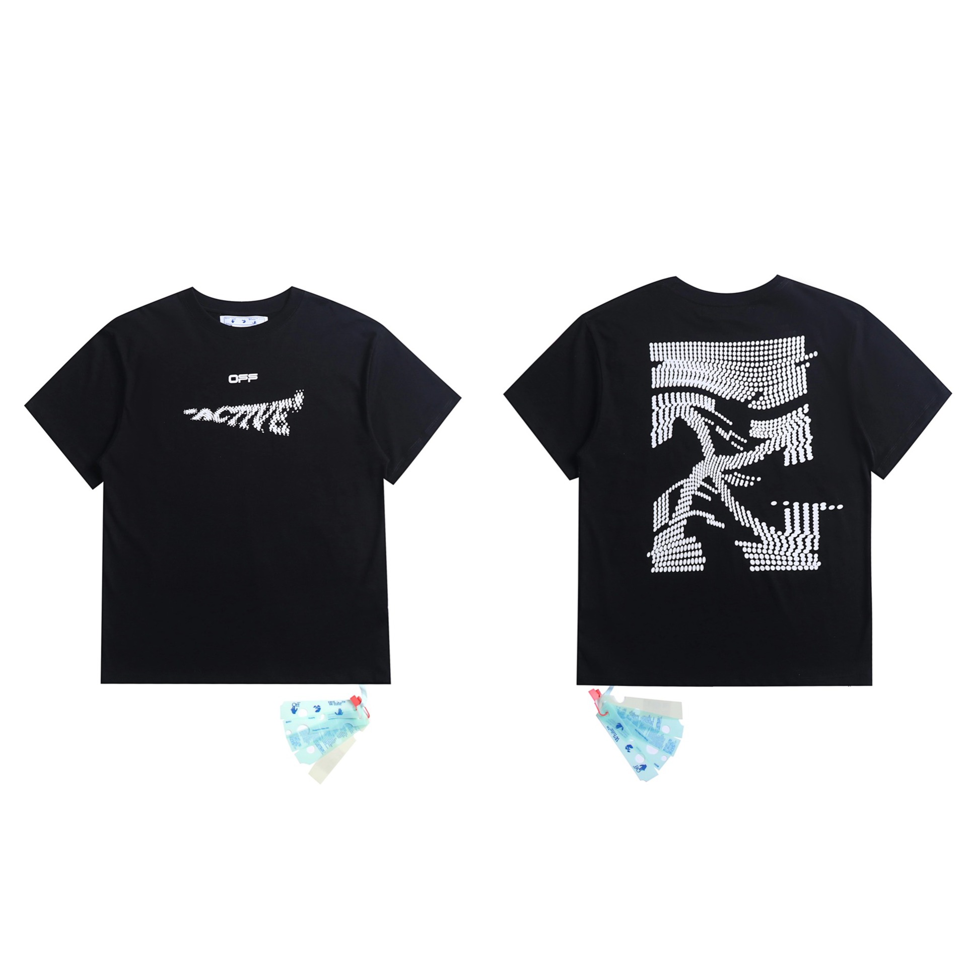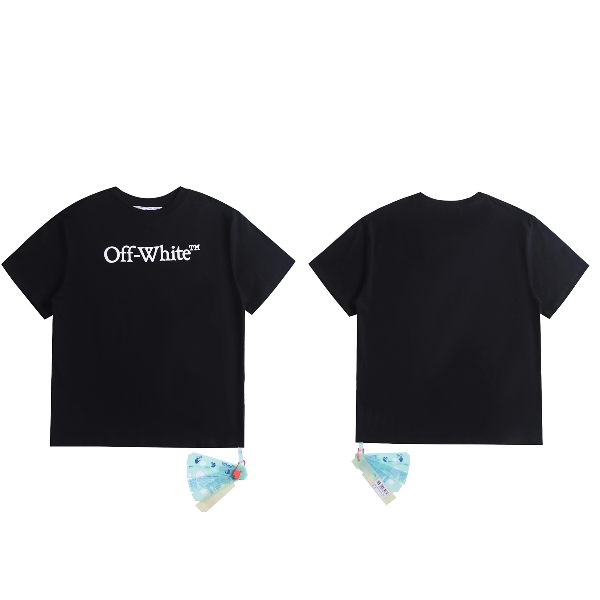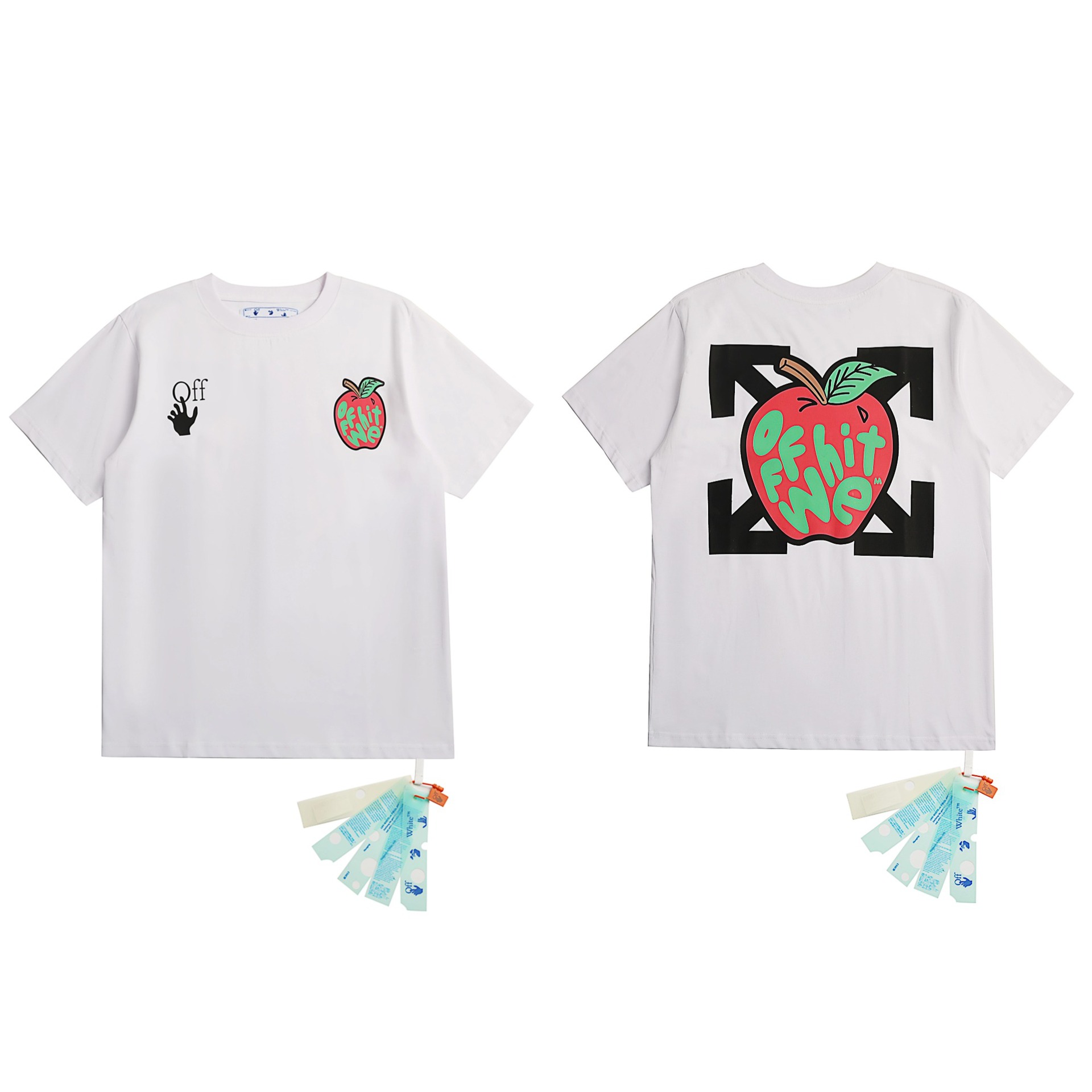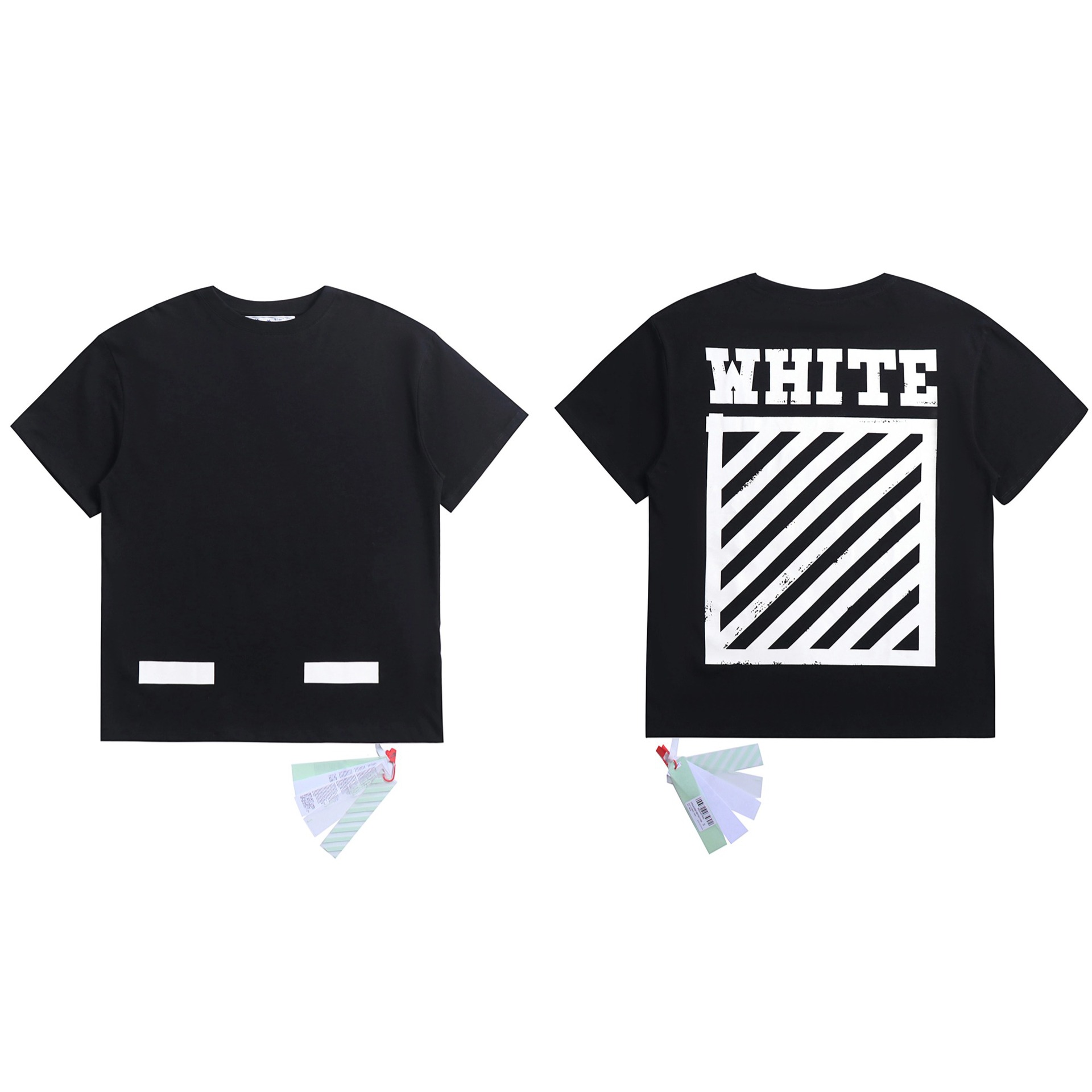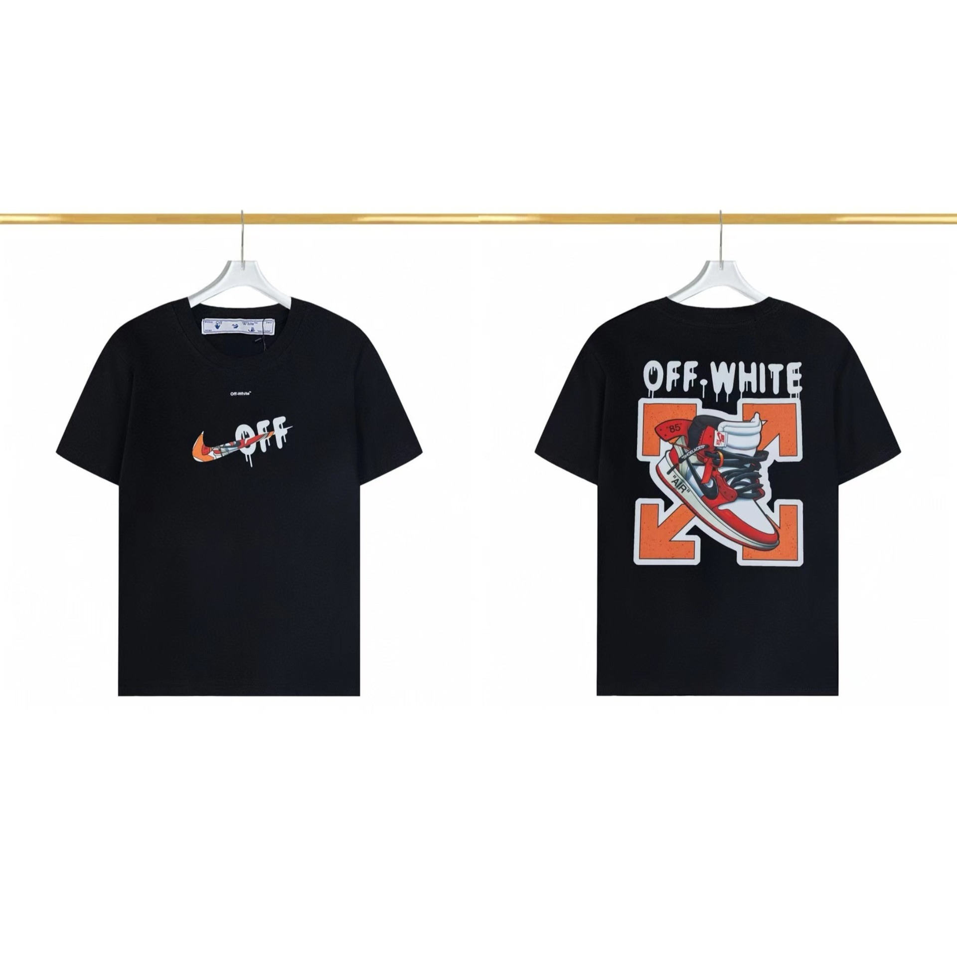 고품질 OW 자수 달 모양 배색 화살표 패턴 라운드넥 풀오버 반팔 남녀공용 라지 사이즈
