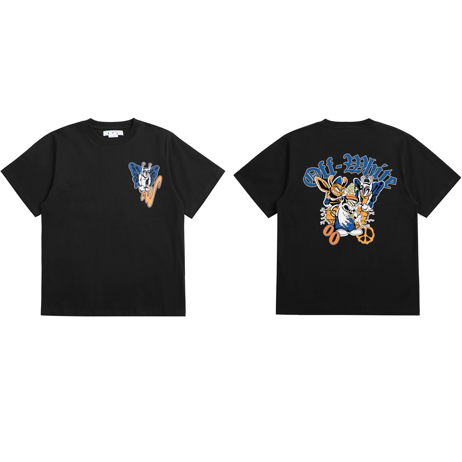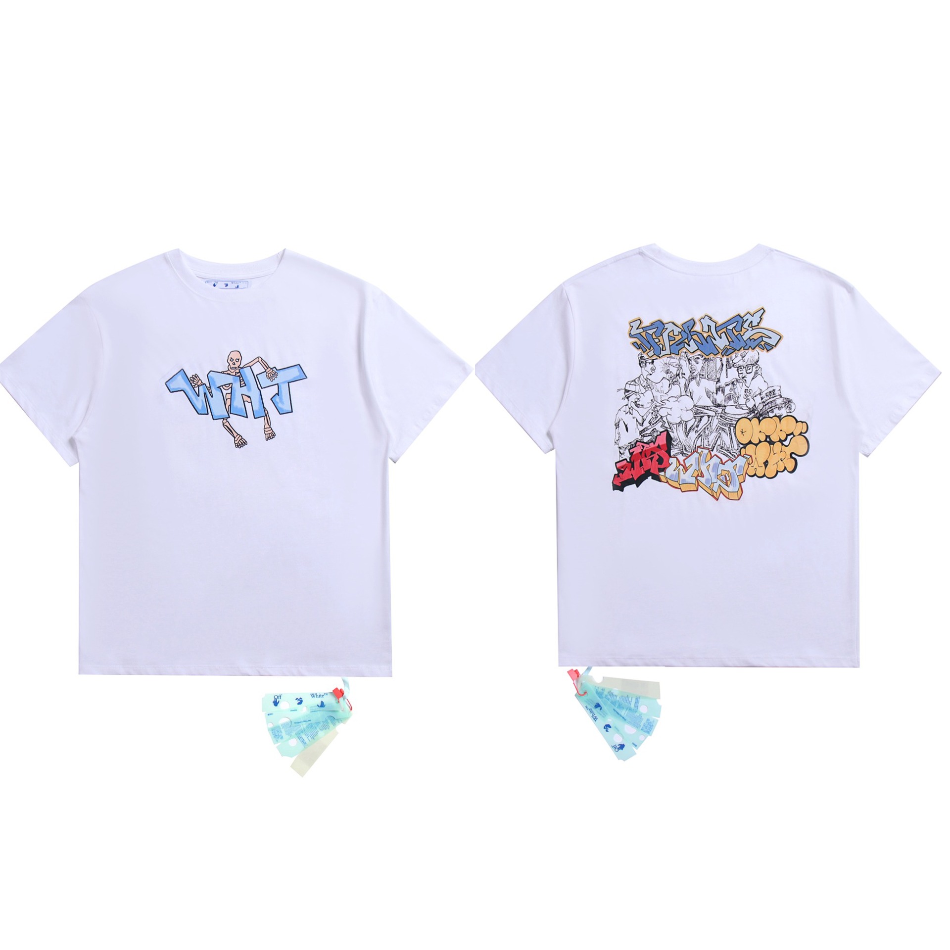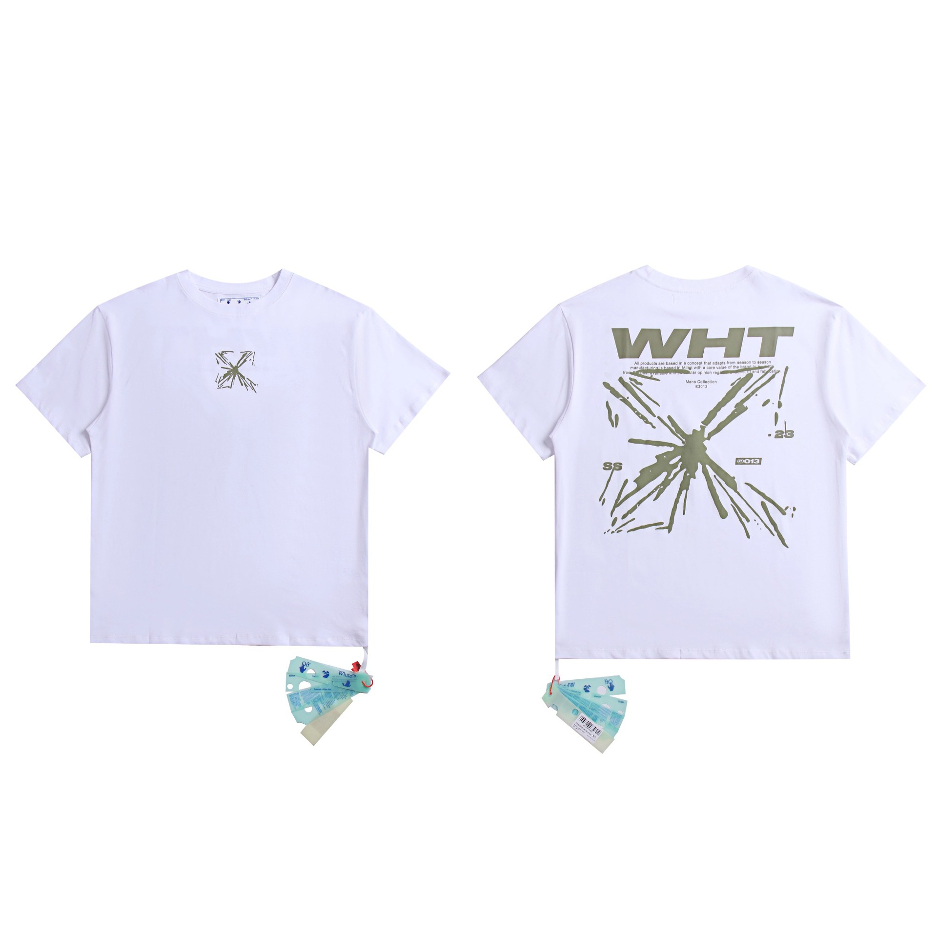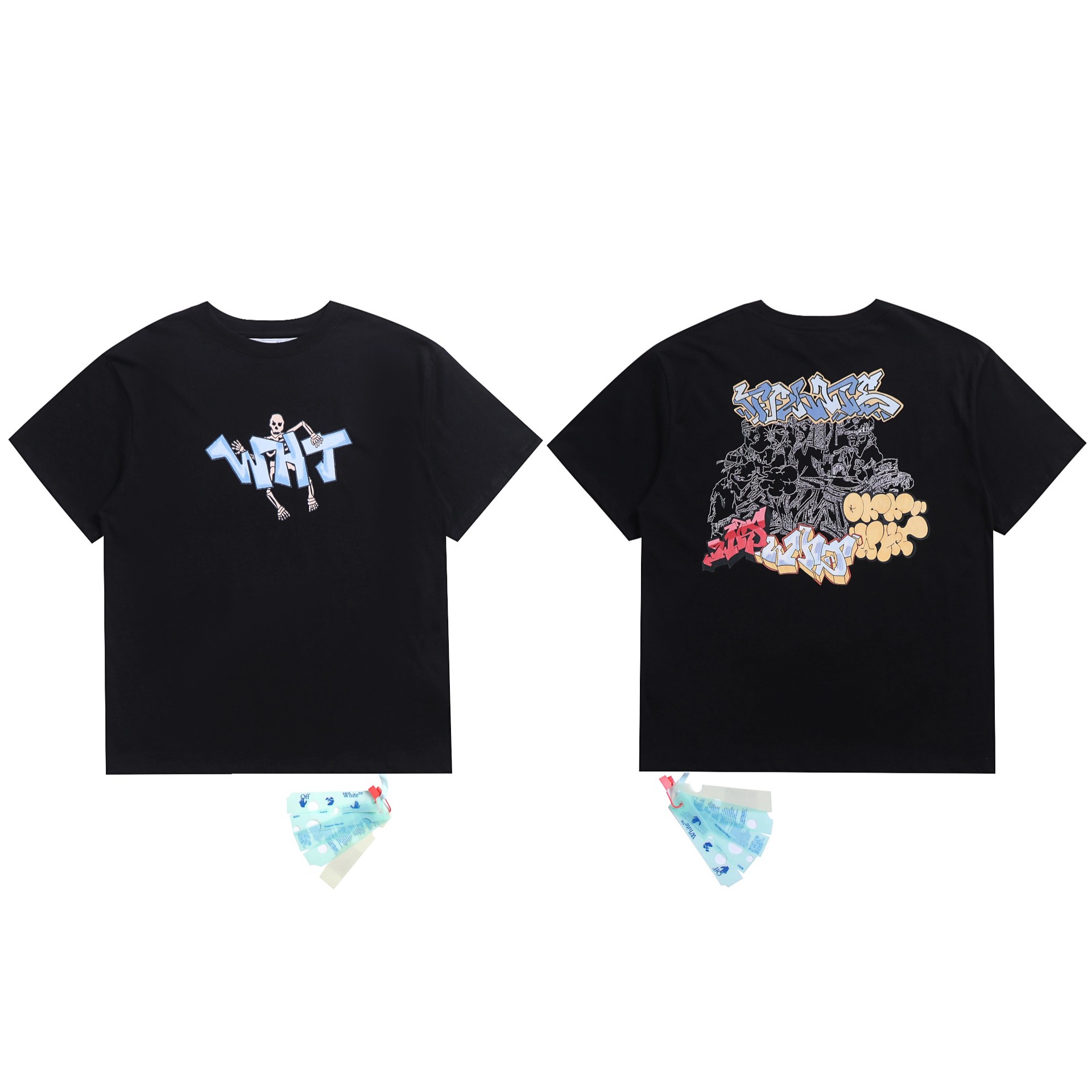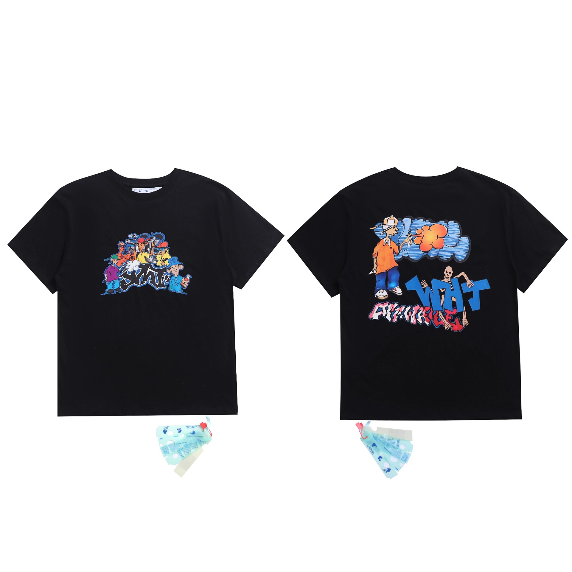 고품질 OW 자수 달 모양 배색 화살표 패턴 라운드넥 풀오버 반팔 남녀공용 라지 사이즈