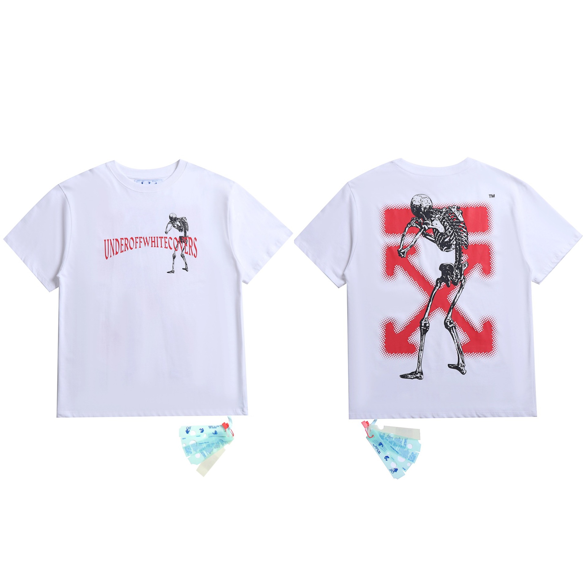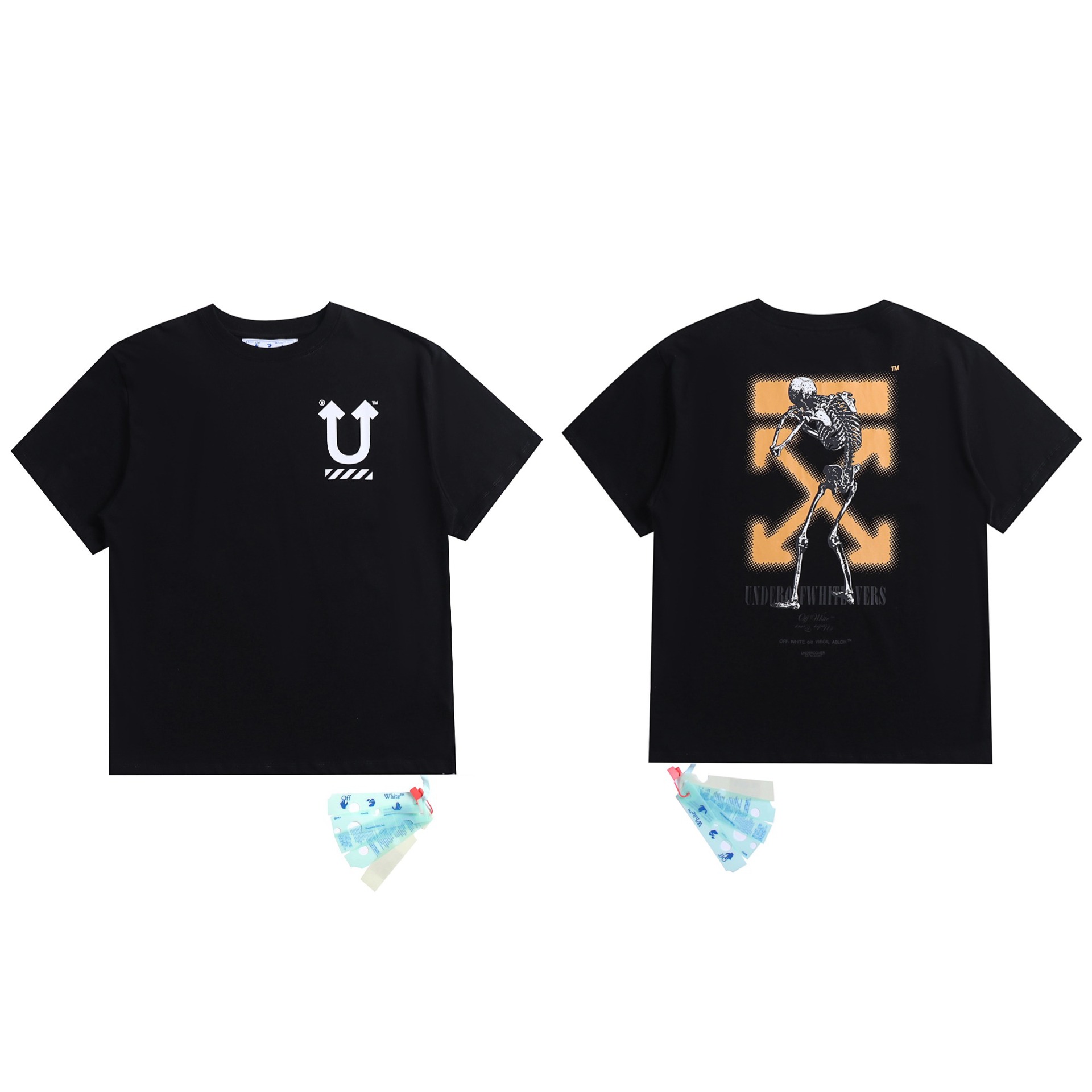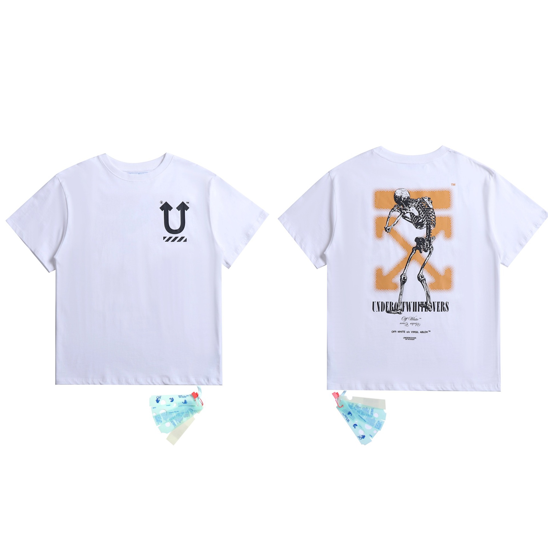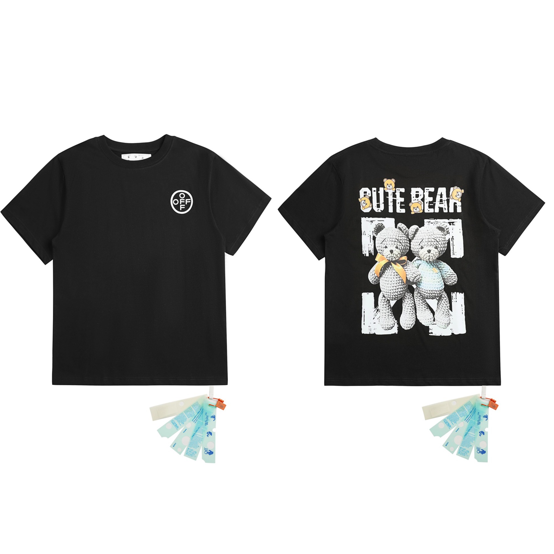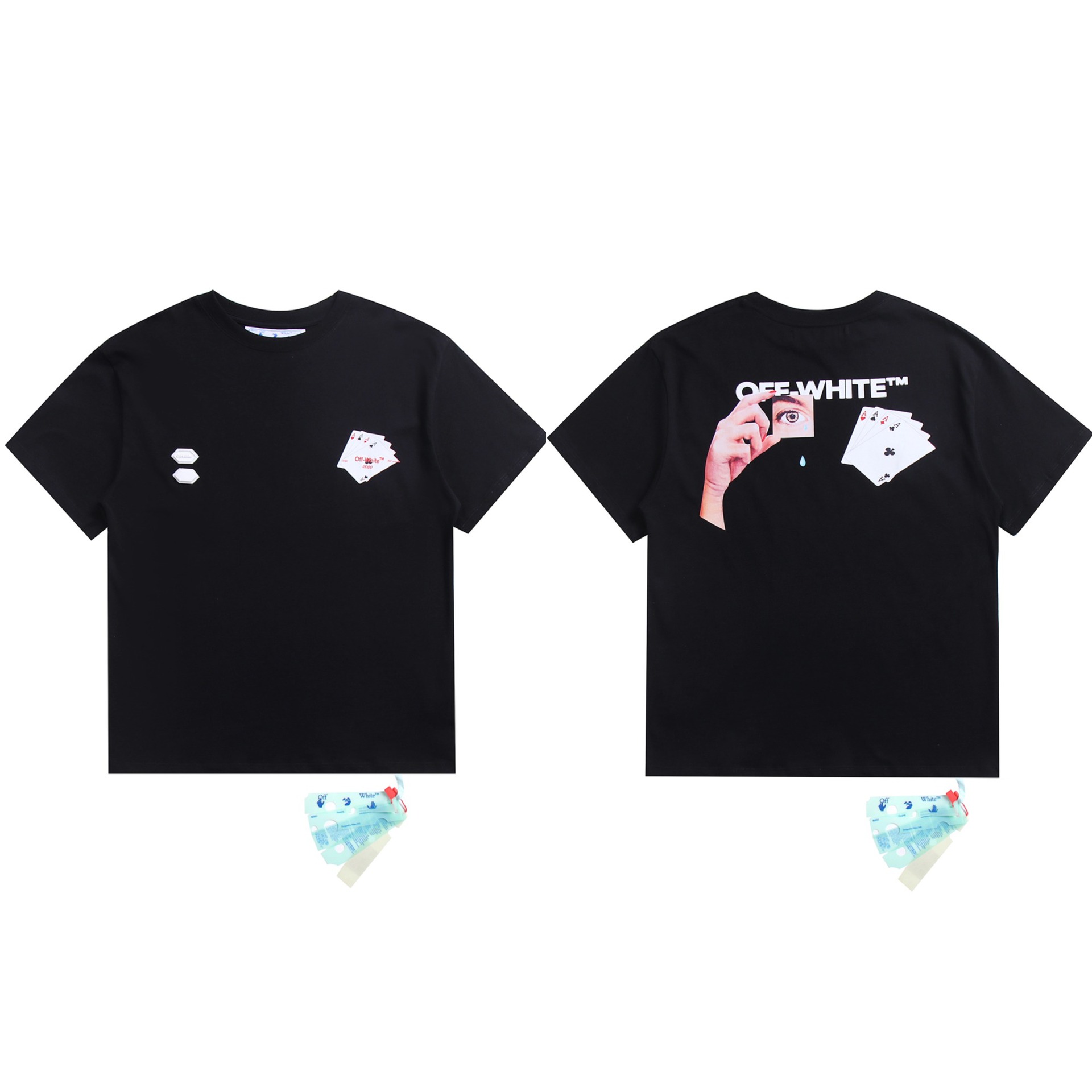 고품질 OW 자수 달 모양 배색 화살표 패턴 라운드넥 풀오버 반팔 남녀공용 라지 사이즈