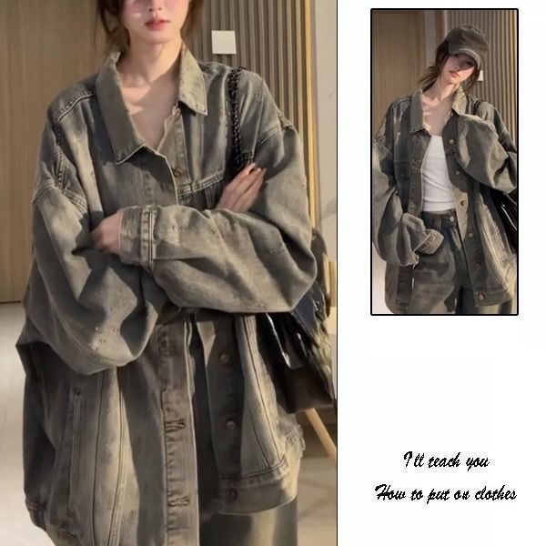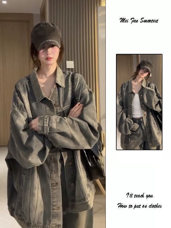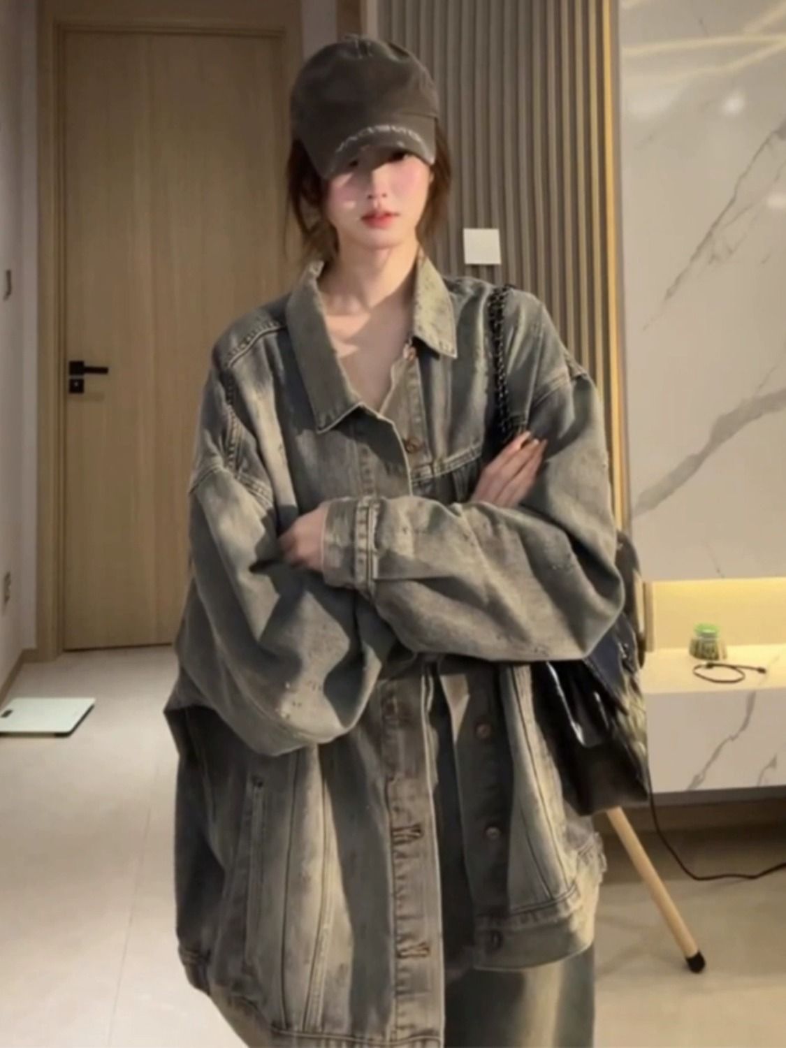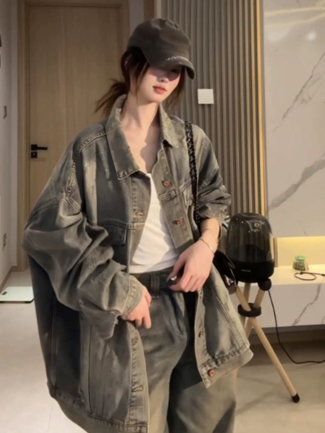 여성을위한 미국 복고풍 워시 데님 재킷 2025 가을 새로운 느슨한 디자인 틈새 올드 재킷 탑스토어 가기