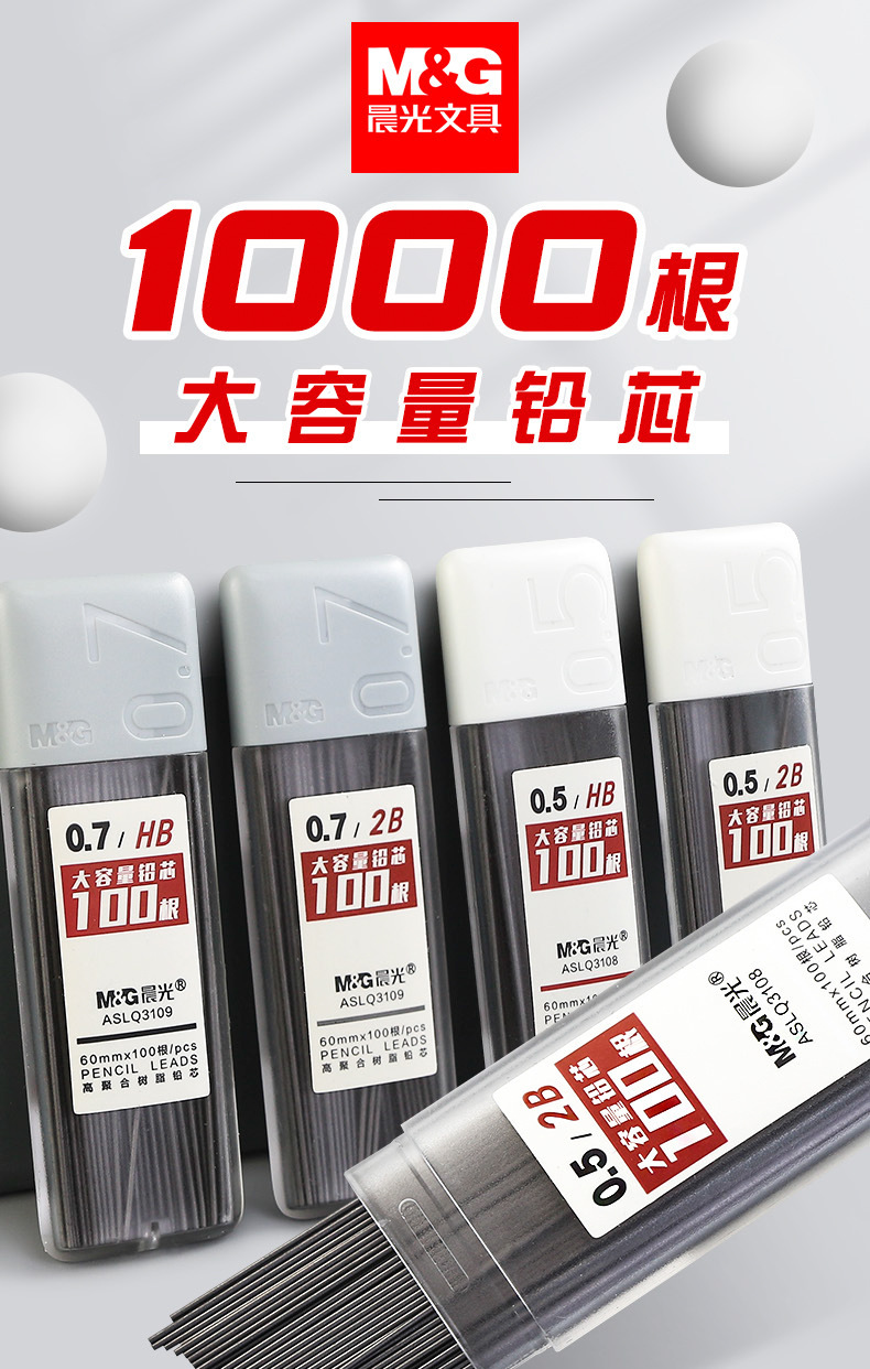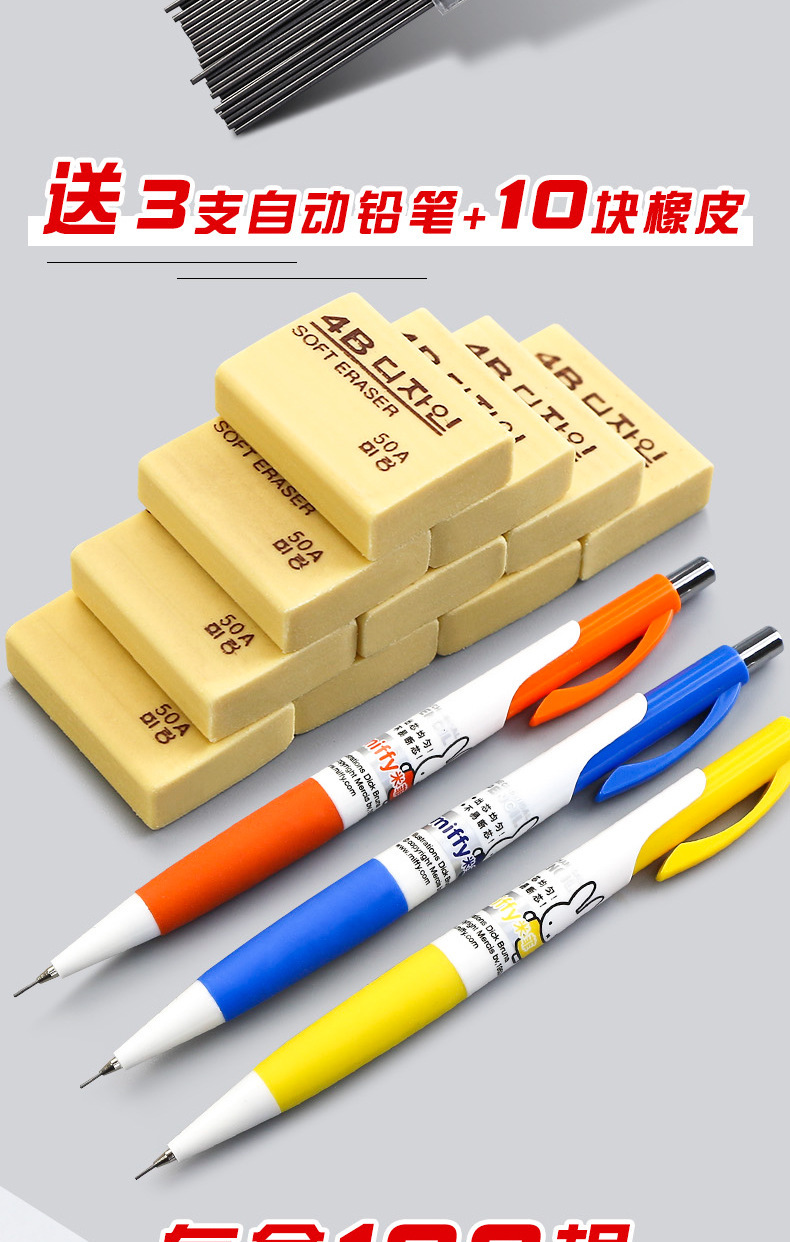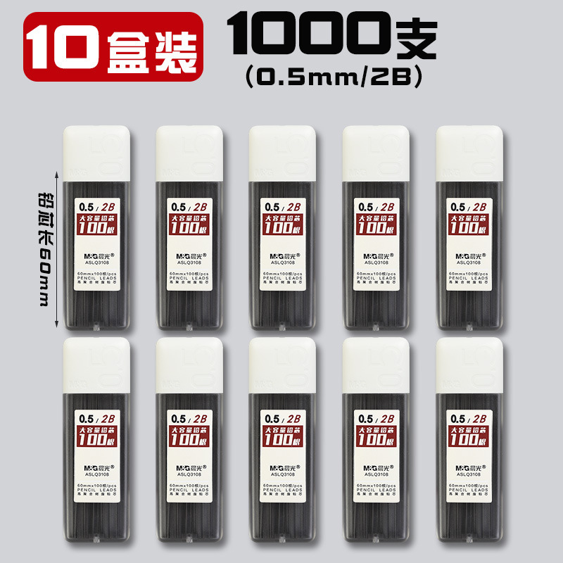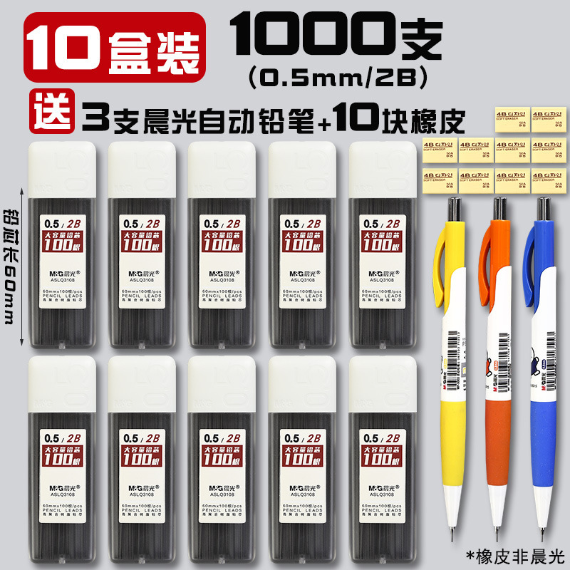 • 0.5/2B(1000개) 10박스에 모닝라이트 자동연필 3개 + 지우개 10개가 들어있습니다.