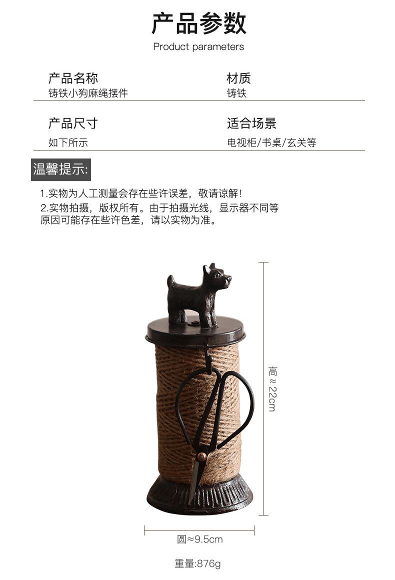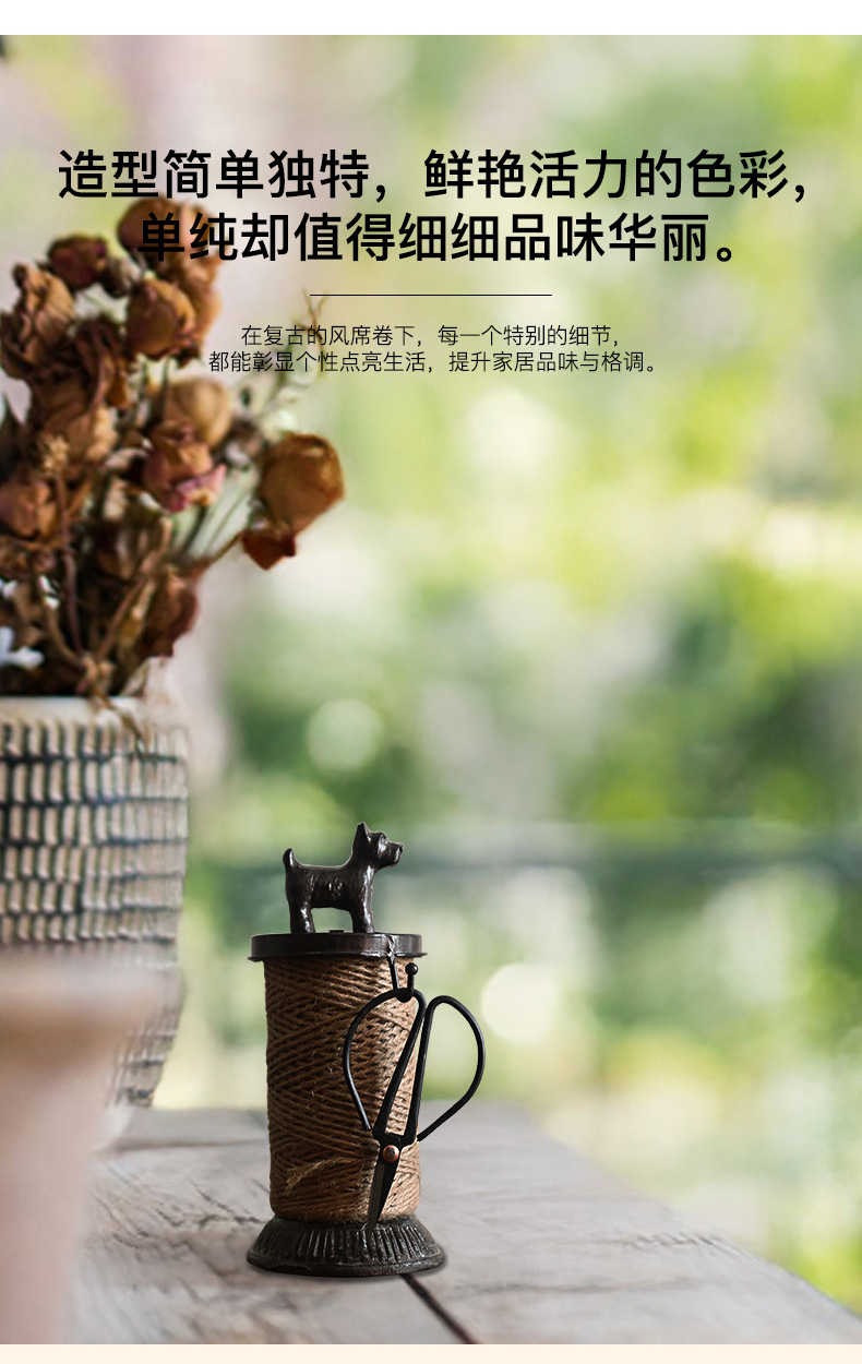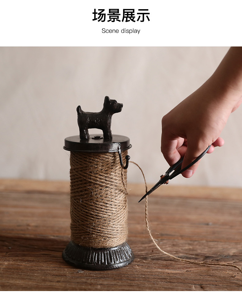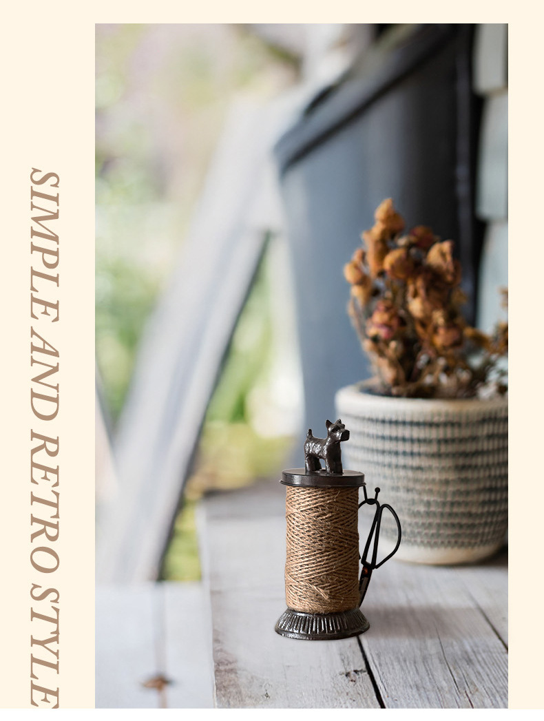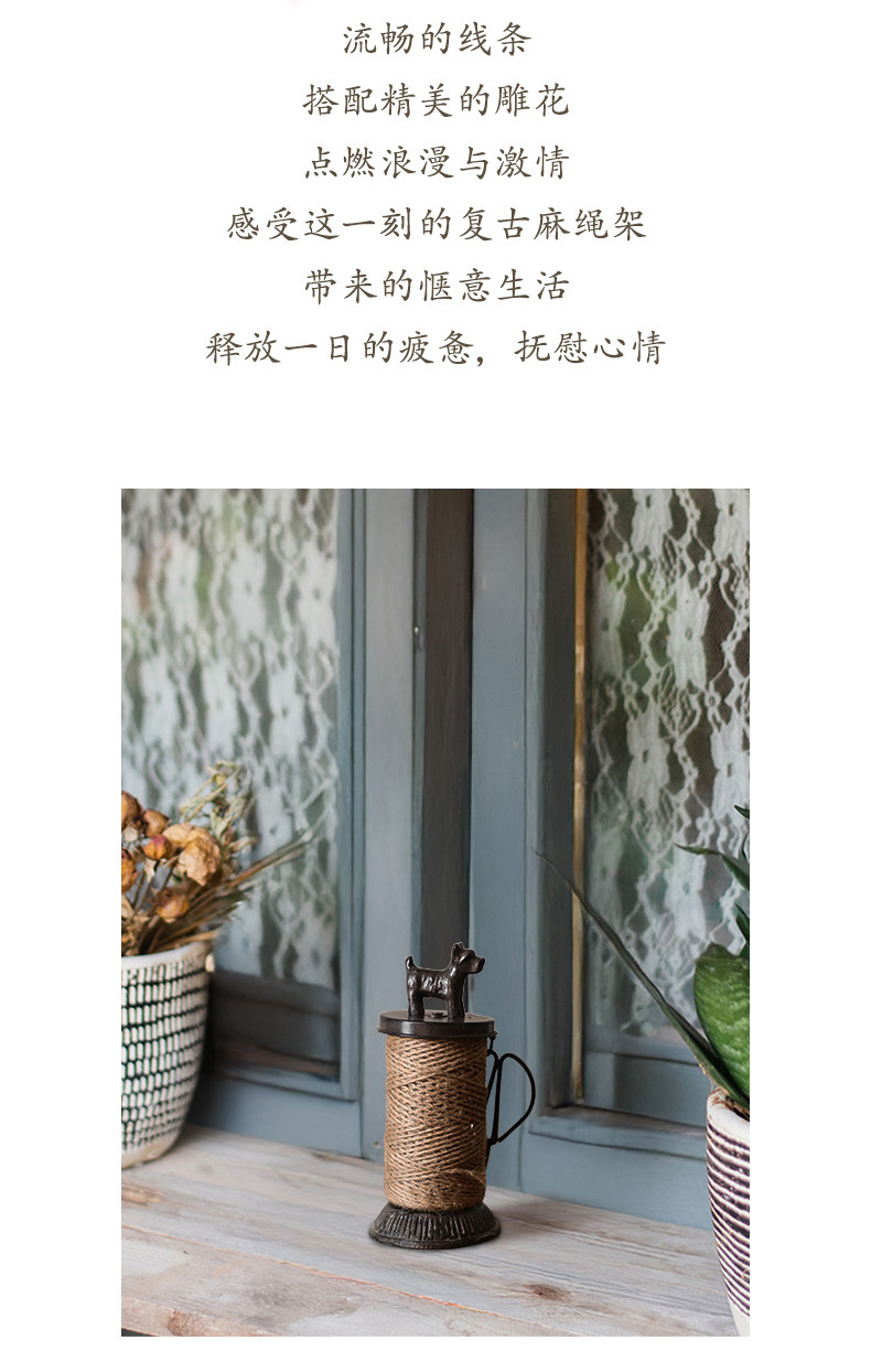 북유럽 복고풍 주철 대마 로프 랙 강아지 스풀 장식품 상점 창 디스플레이 사진 소품에는 대마 로프 보관이 포함되어 있습니다.