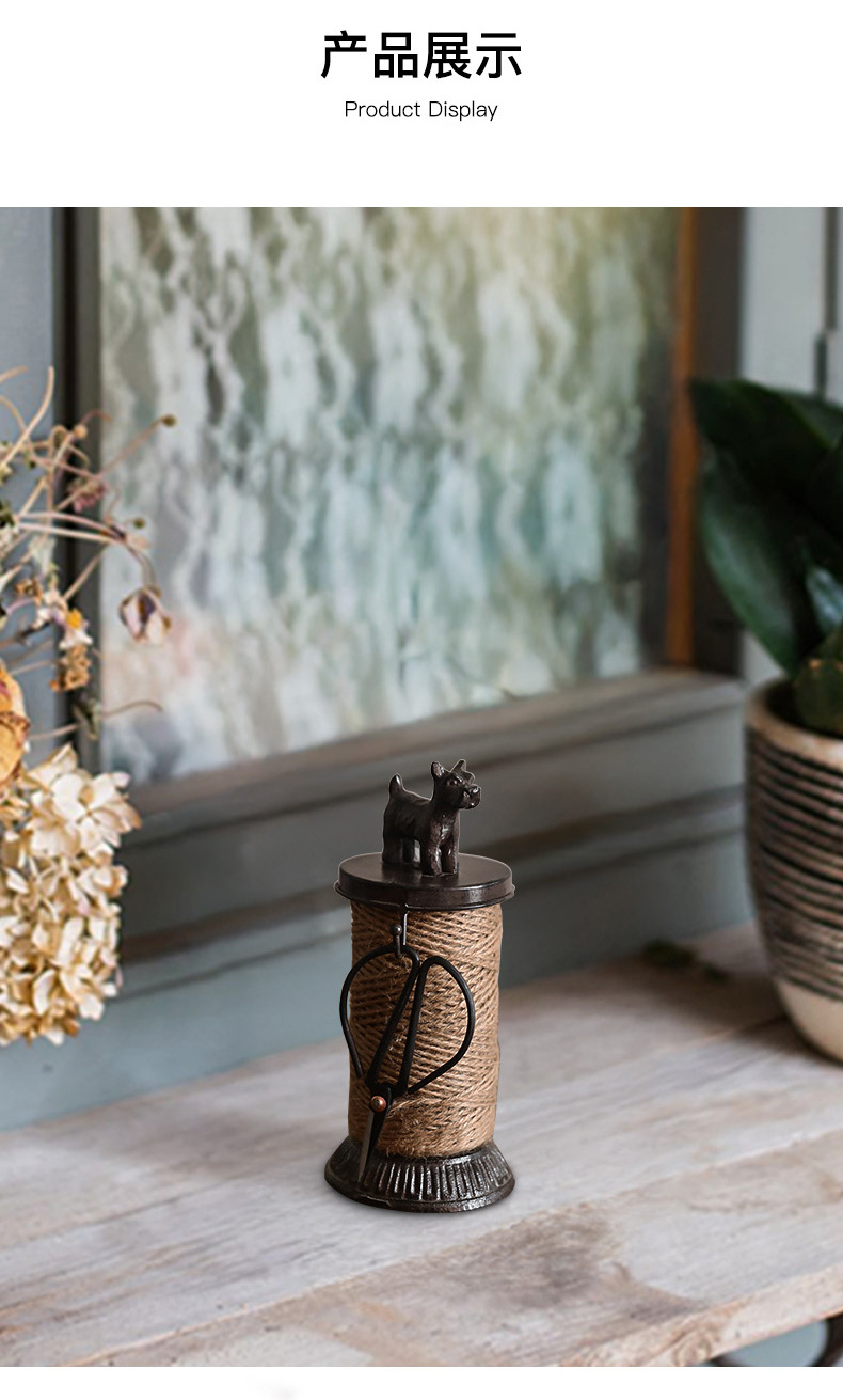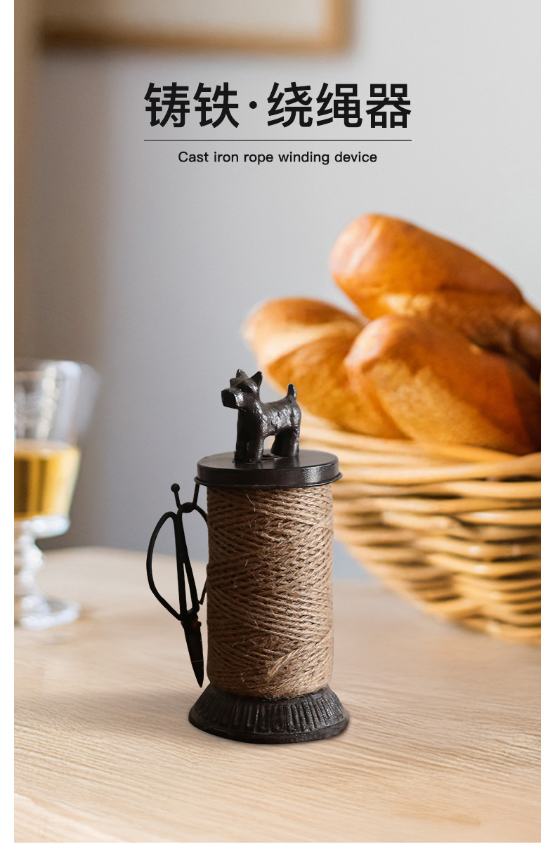 북유럽 복고풍 주철 대마 로프 랙 강아지 스풀 장식품 상점 창 디스플레이 사진 소품에는 대마 로프 보관이 포함되어 있습니다.스토어 가기
