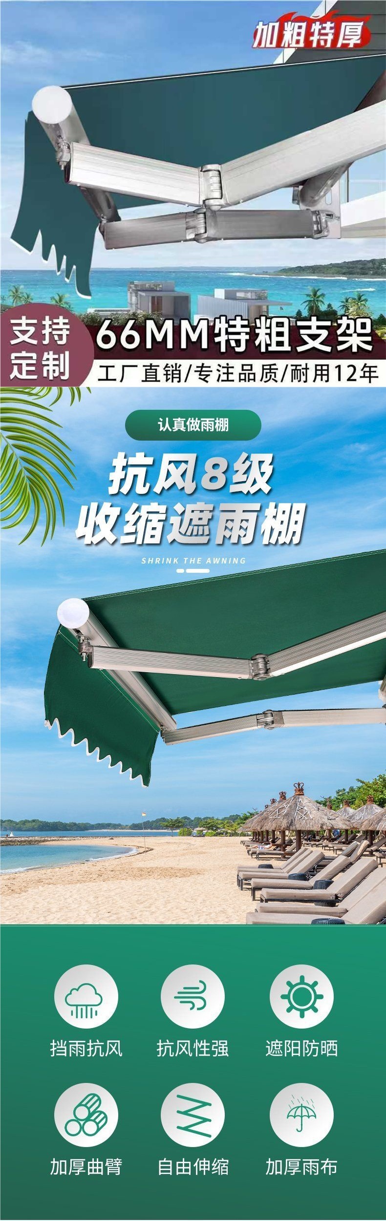 태양 그늘 접이식 개폐식 전기 핸드 크랭크 수축 태양 그늘 발코니 야외 텐트 안뜰 차양 공급
