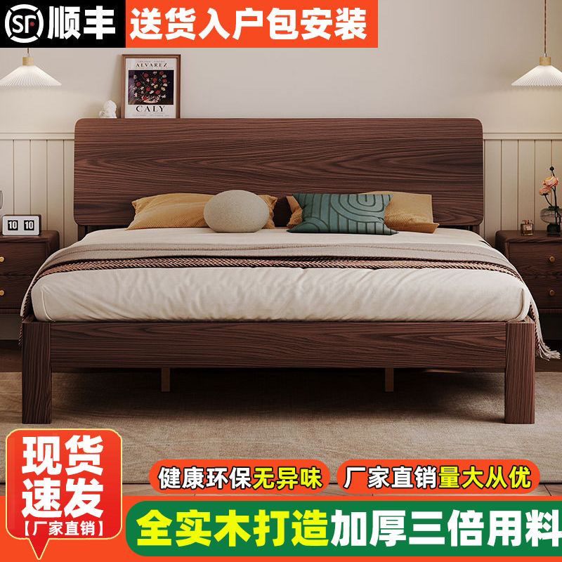 두꺼운 원목 침대 임대 주택 원목 침대 모던 심플 1.8 더블 침대 홈 1.5 마스터 침실 싱글 1.2 침대스토어 가기