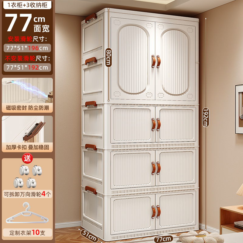 • ₪77面宽【1层衣柜+1收纳箱送10个衣架】全实色