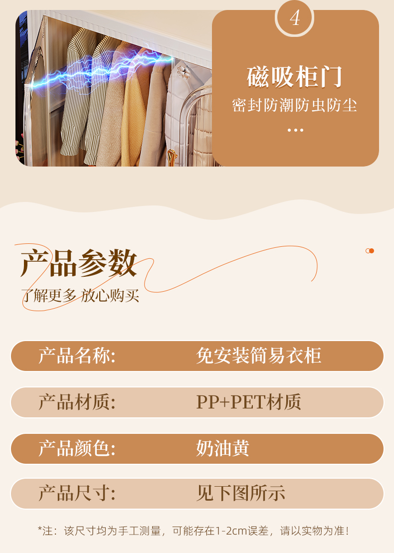 • ₪105面宽【1层衣柜送10个衣架】全实色
