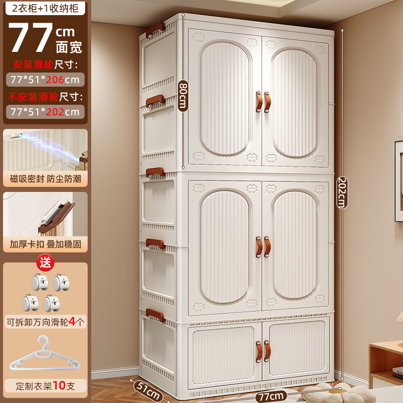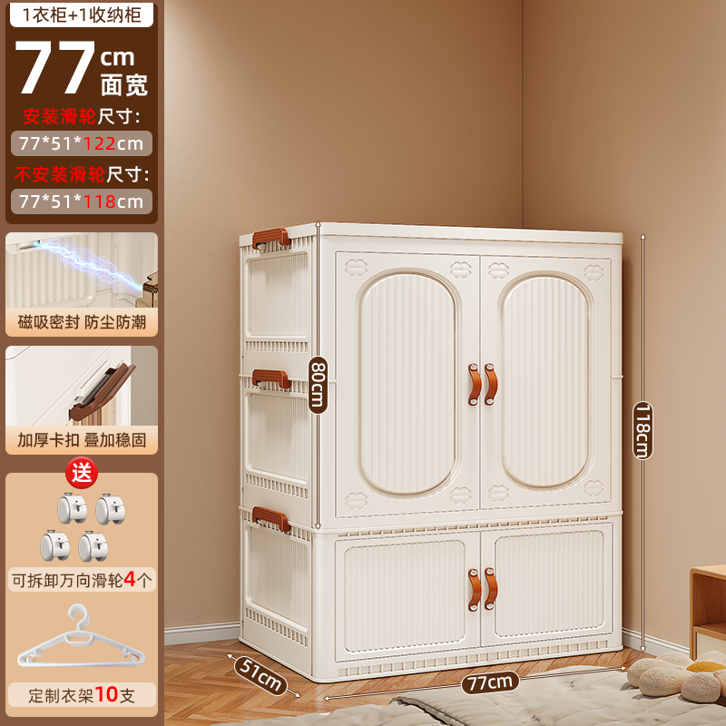 • ₪77面宽【2层衣柜+1收纳箱送10个衣架】全实色
