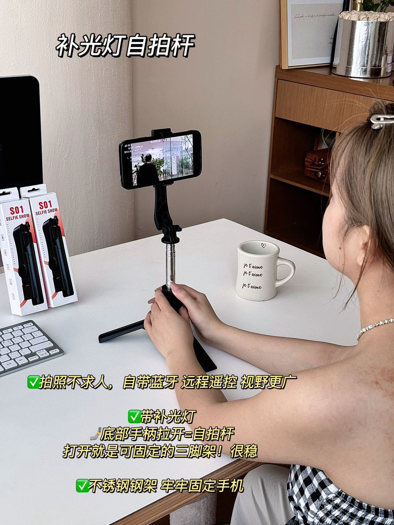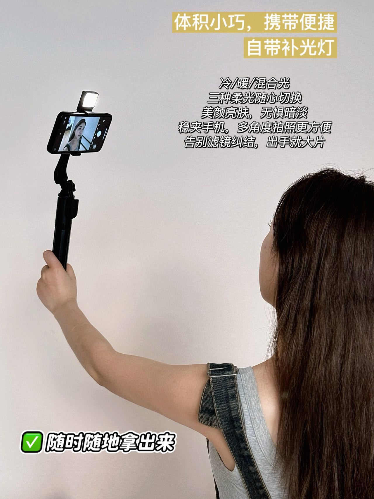 휴대폰 셀카봉 홀더, 흔들림 방지, 휴대용 올인원 블루투스 원격 제어 필 라이트 라이브 방송 접이식 휴대폰 홀더스토어 가기