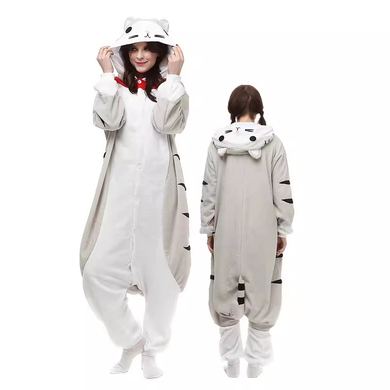 까마귀 만화 동물 Onesies 잠옷 블랙 파우더 KT 고양이 성인 애니메이션 홈 할로윈 의상 Kigurumi