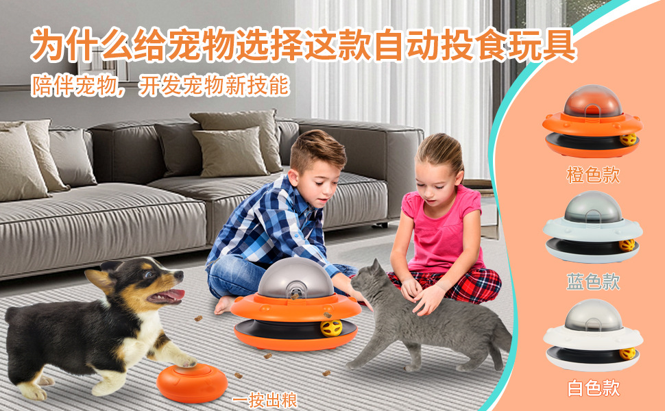작은 노란 오리 크로스보더 신제품 고양이 강아지 원격 조종 UFO 애완동물 장난감 자동 급식기스토어 가기