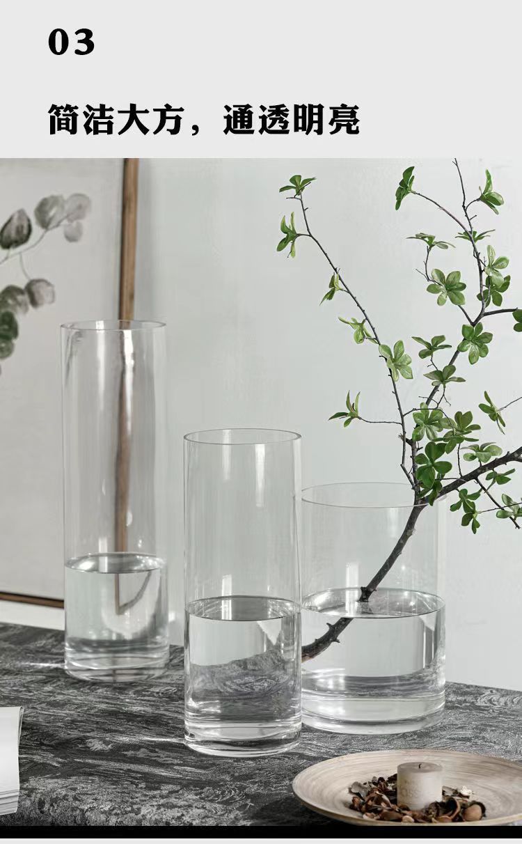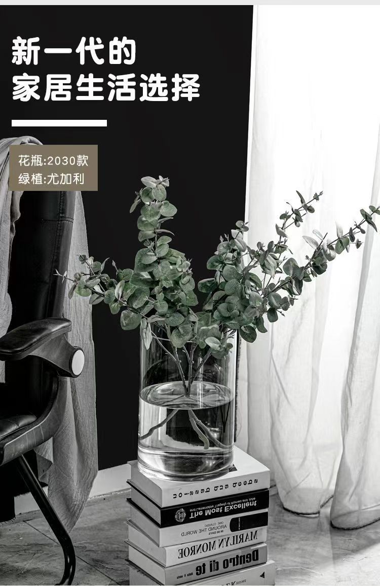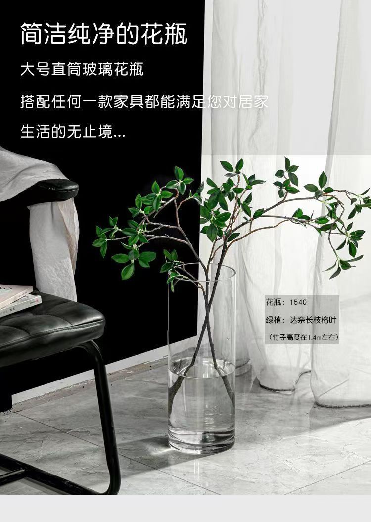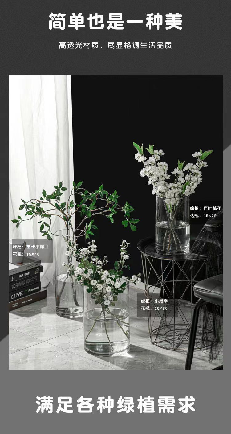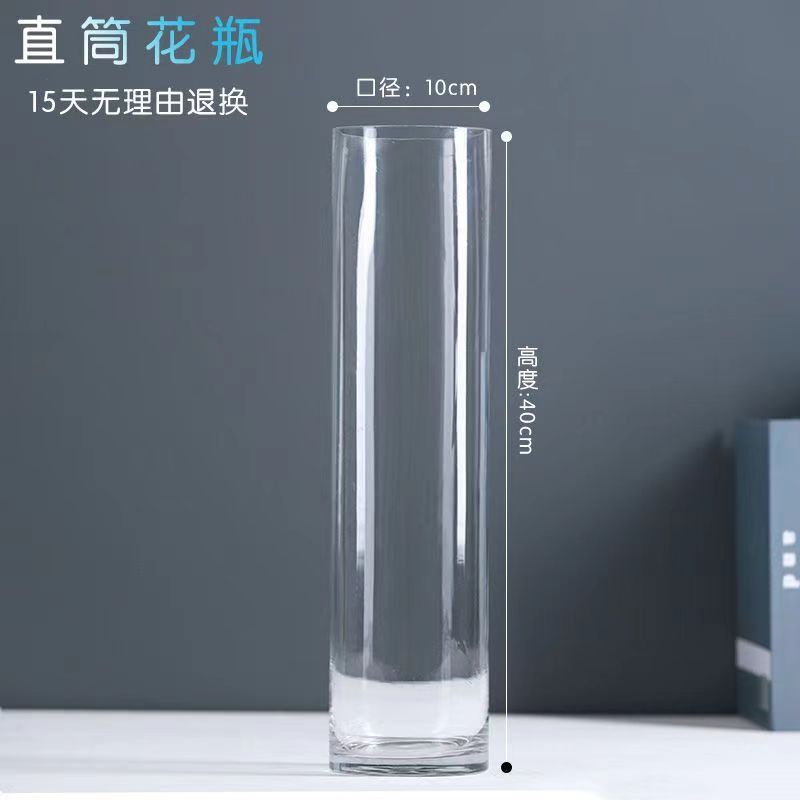 실린더 꽃병 장식품, 거실 꽃꽂이, 투명 유리 꽃병, 말초목 수경 꽃병, 넓은 입구, 인터넷 연예인 부자 대나무스토어 가기