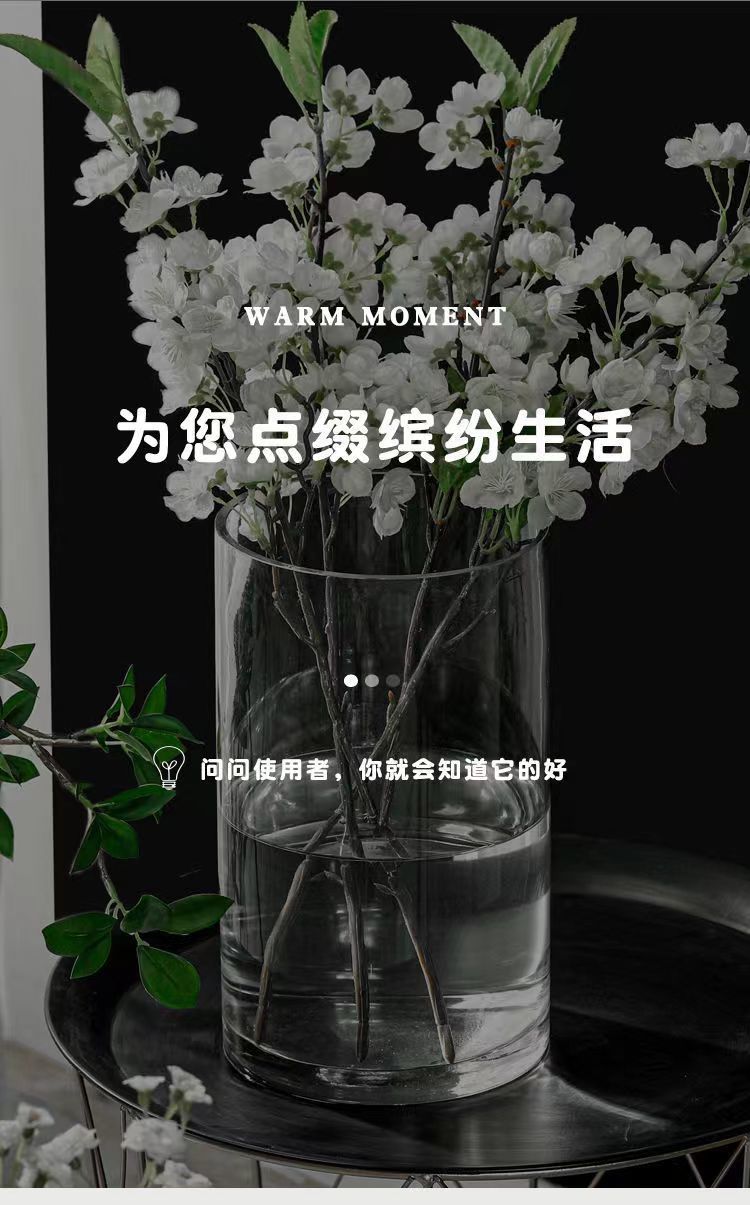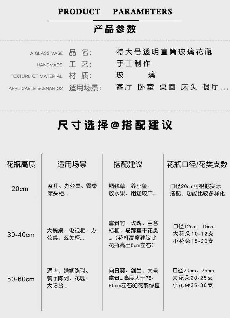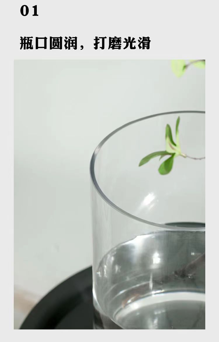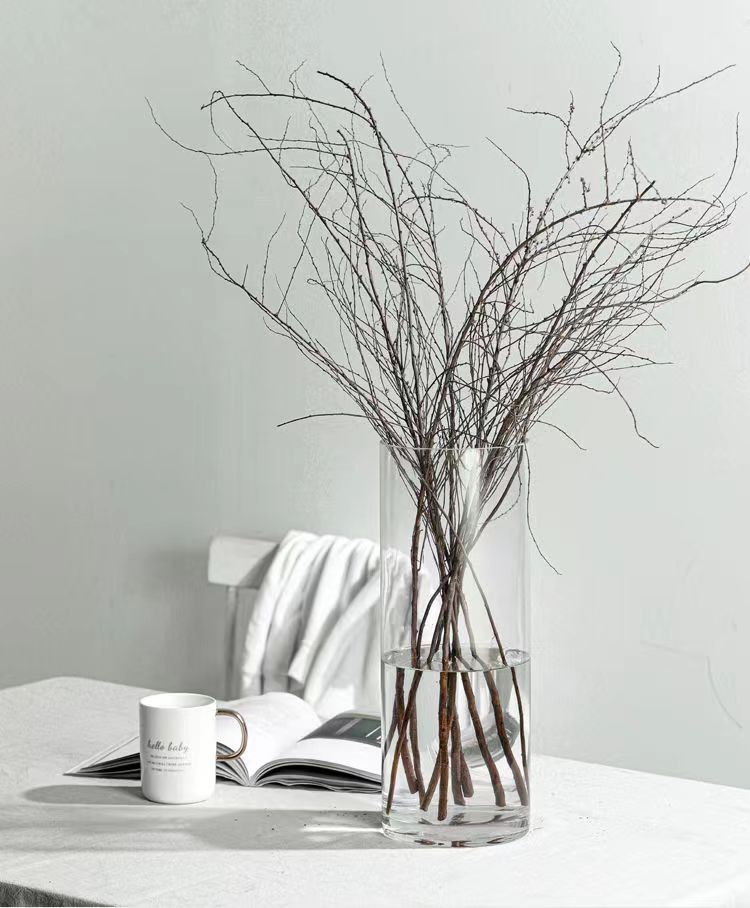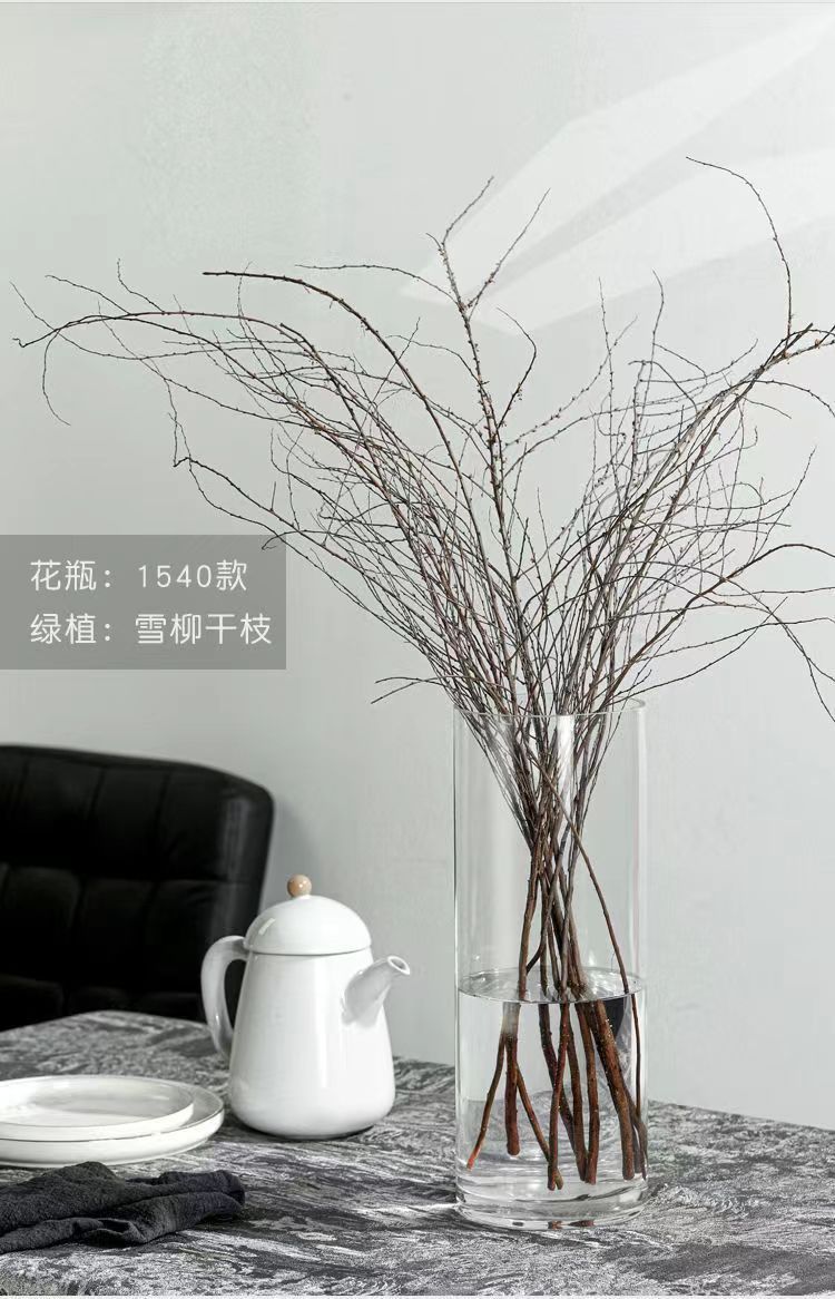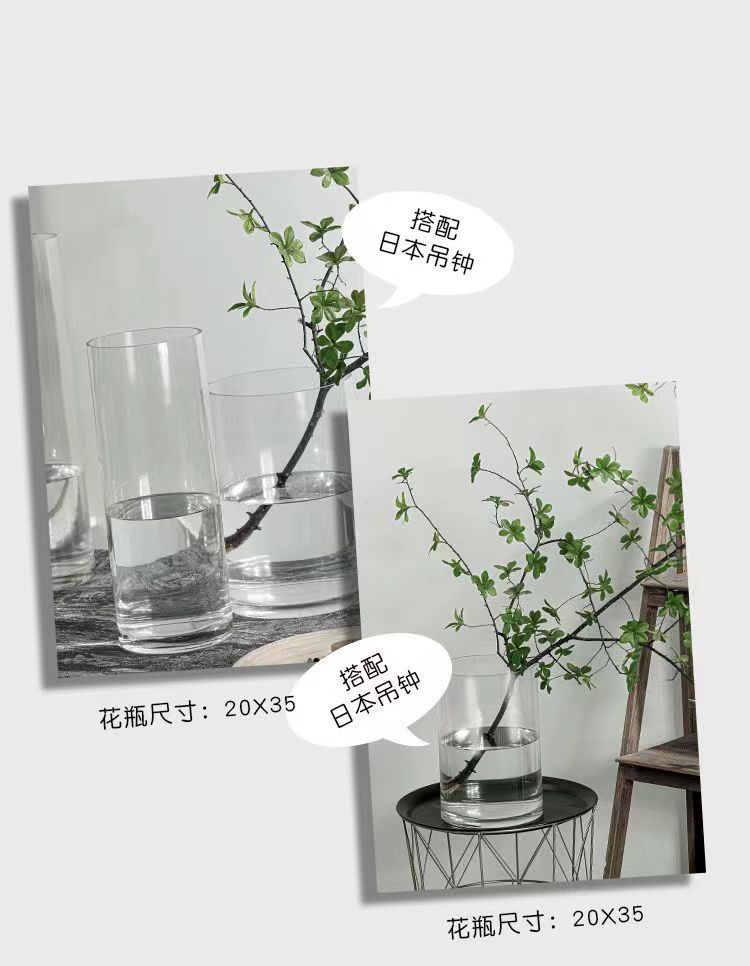실린더 꽃병 장식품, 거실 꽃꽂이, 투명 유리 꽃병, 말초목 수경 꽃병, 넓은 입구, 인터넷 연예인 부자 대나무스토어 가기