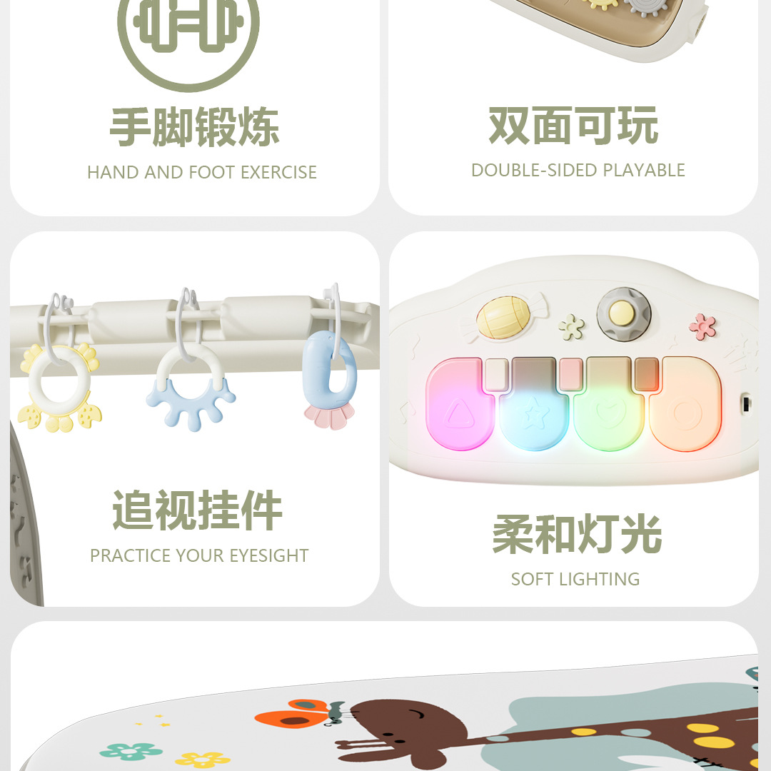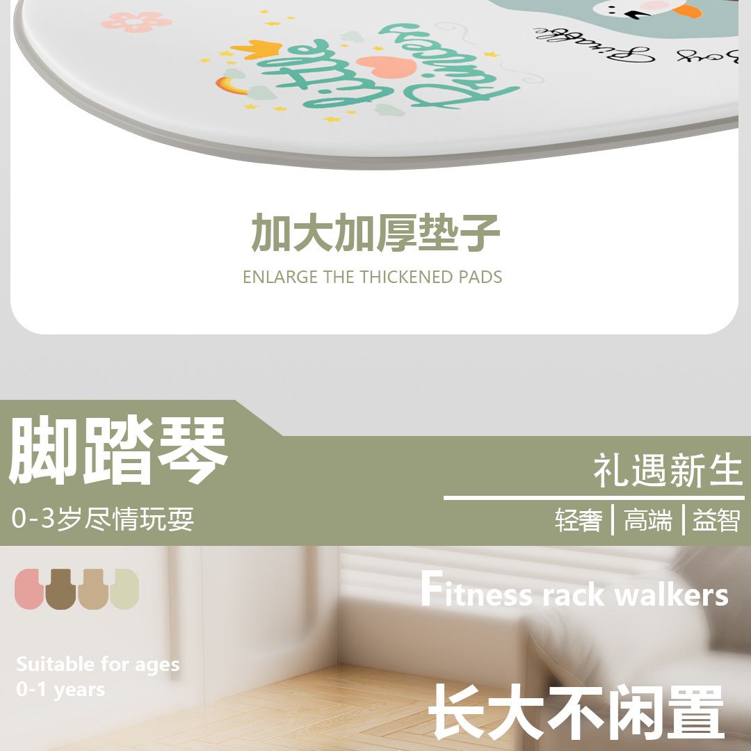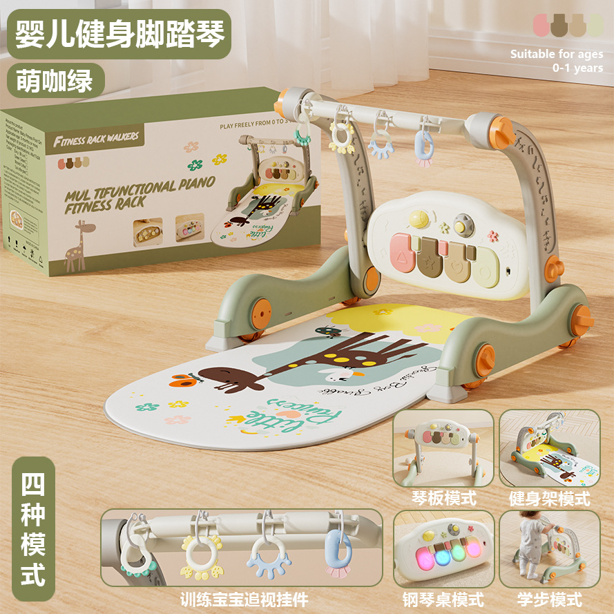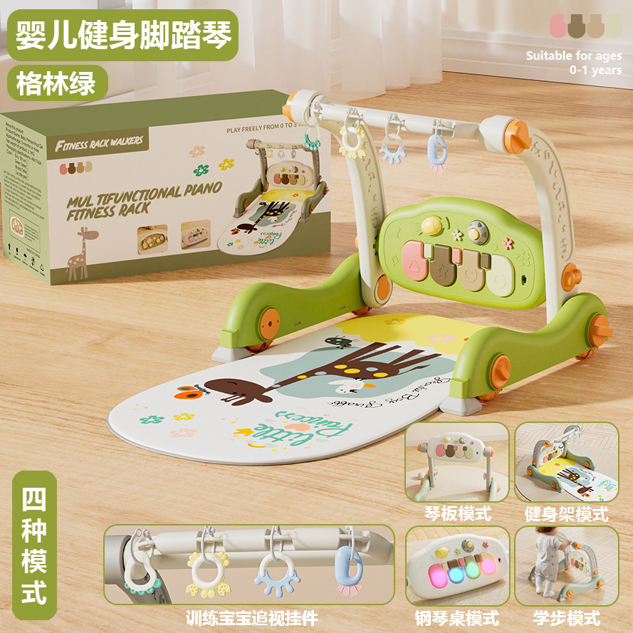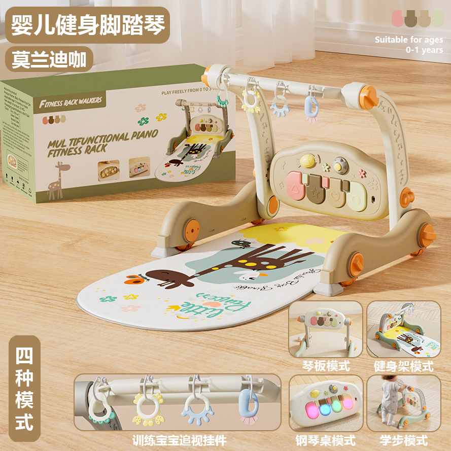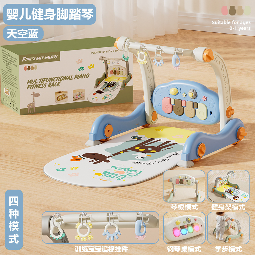 아기 4-in-1 피아노 피트니스 스탠드 보행기 0-36개월 아기 조기 교육 음악 페달 게임 담요
