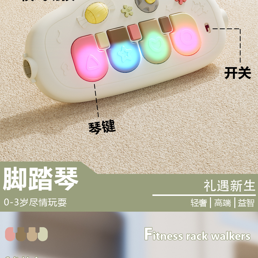 아기 4-in-1 피아노 피트니스 스탠드 보행기 0-36개월 아기 조기 교육 음악 페달 게임 담요스토어 가기