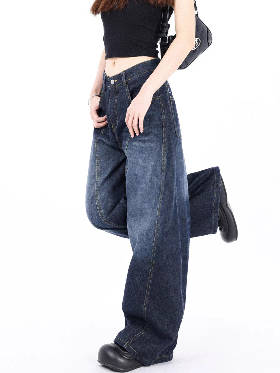 미국식 와이드 레그 카나타 팬츠 여성용 소형 체형용 청바지 와이드 레그 루즈핏 슬림 스트레이트 드레이프 여성용 데님 와이드 팬츠스토어 가기