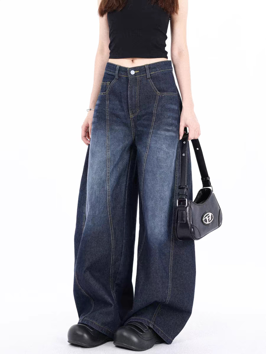 미국식 와이드 레그 카나타 팬츠 여성용 소형 체형용 청바지 와이드 레그 루즈핏 슬림 스트레이트 드레이프 여성용 데님 와이드 팬츠