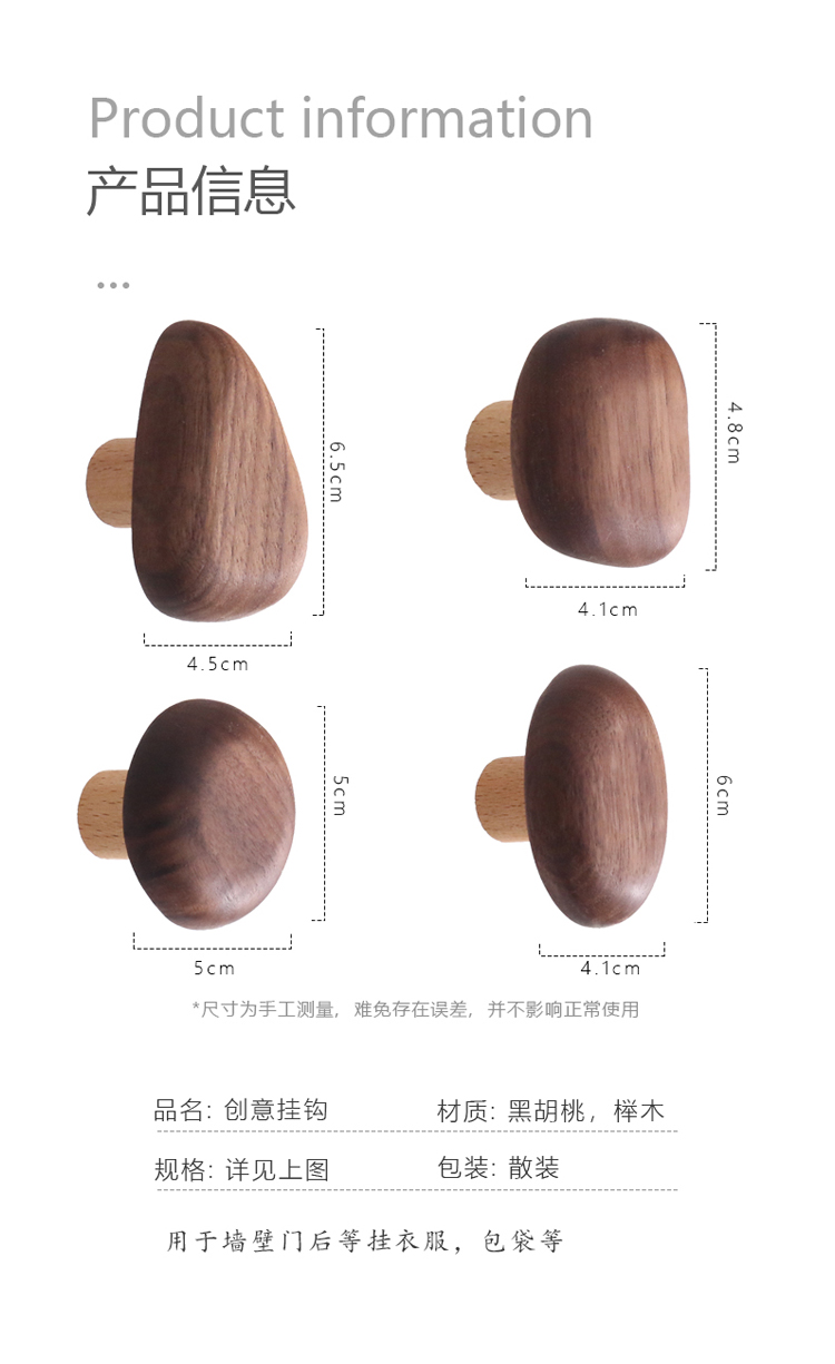 크리 에이 티브 코트 후크 블랙 호두 벽 장식 벽걸이 단단한 나무 라운드 후크 현관 옷 걸이 후크 라이트 럭셔리 펀치
