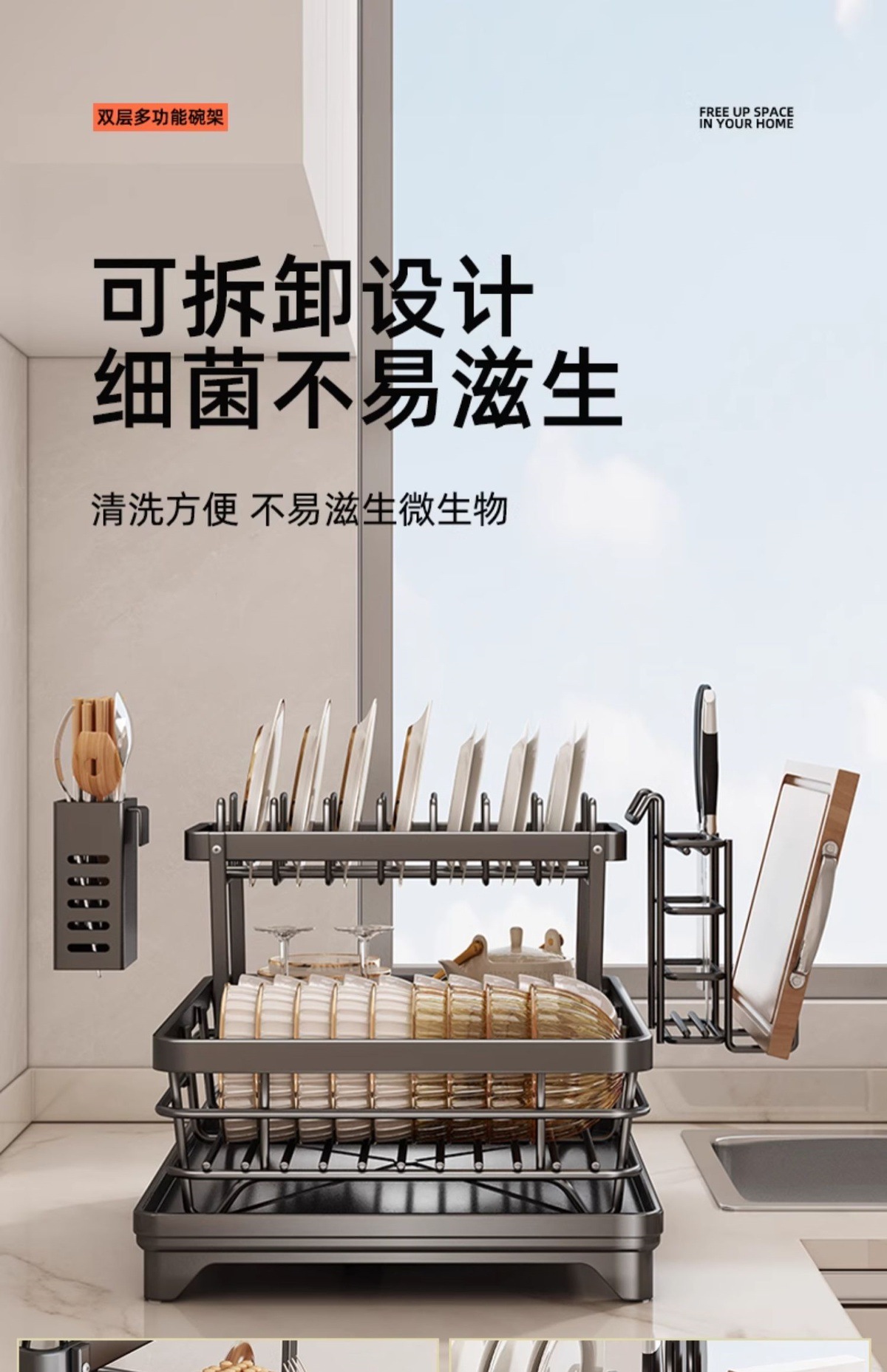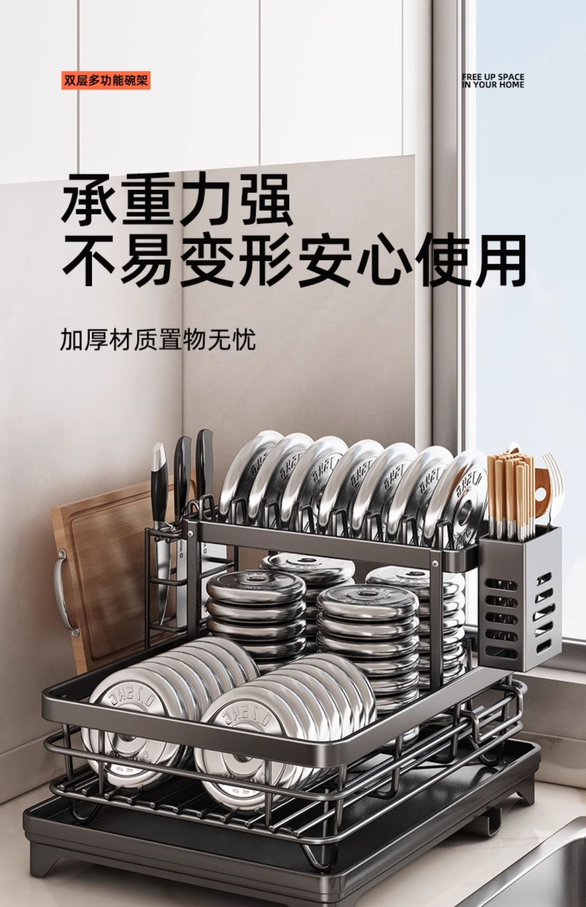 Youqin 접시 보관함 배수구 식기 랙 주방 보관함 스테인레스 스틸 그릇과 접시 더블 레이어 배수 바구니