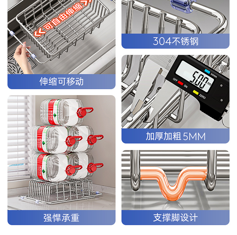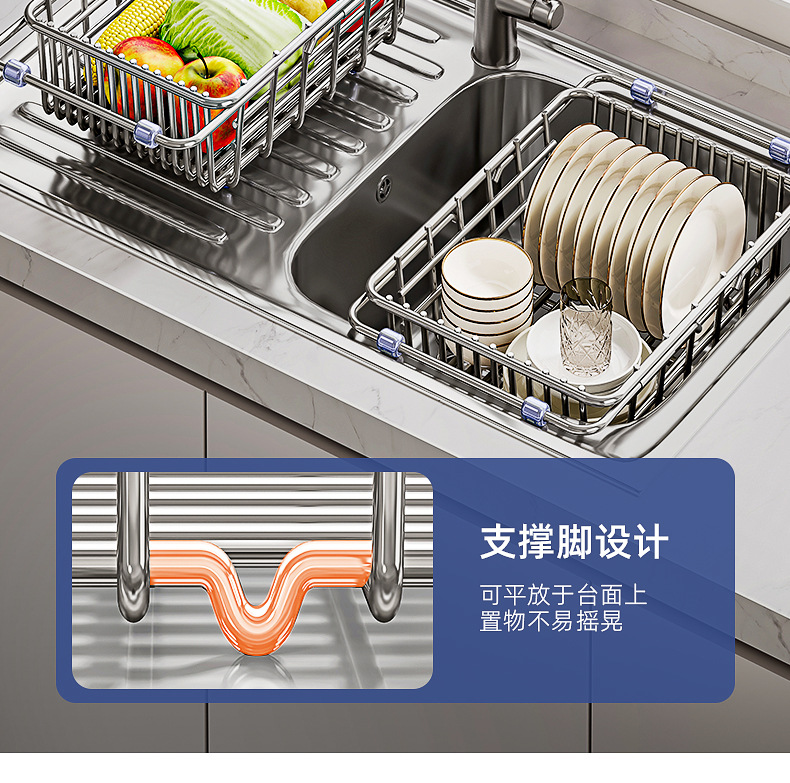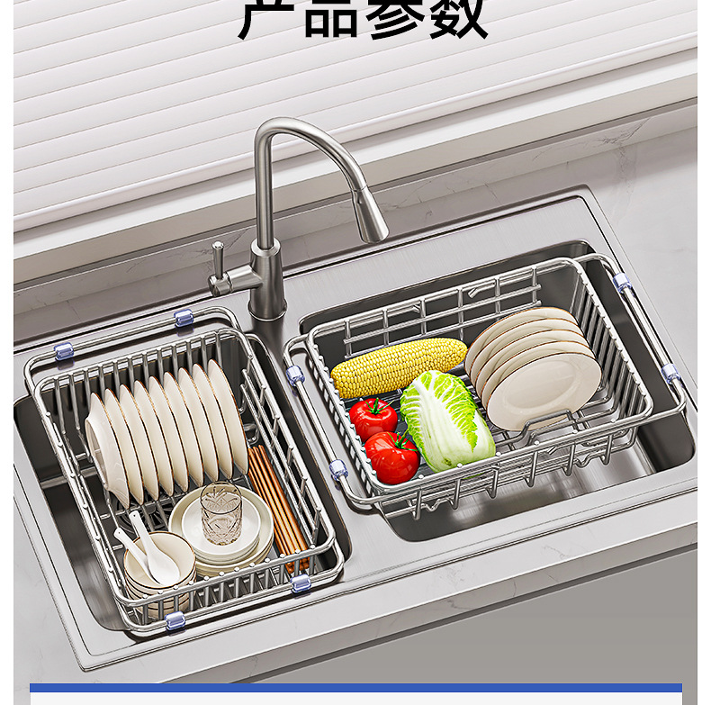 싱크대 배수 바구니 스테인레스 스틸 싱크대 식기 세척대 텔레스코픽 주방 선반 식기 보관함 주방 용품스토어 가기