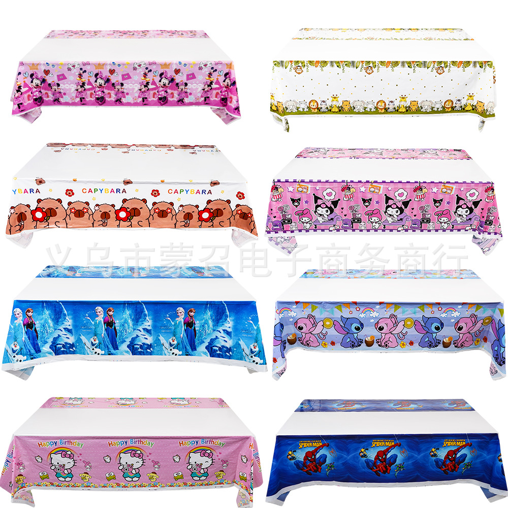 파티 식탁보 만화 생일 파티 일회용 PE 직사각형 피크닉 생일 플라스틱 식탁보 장식 다양한 스타일