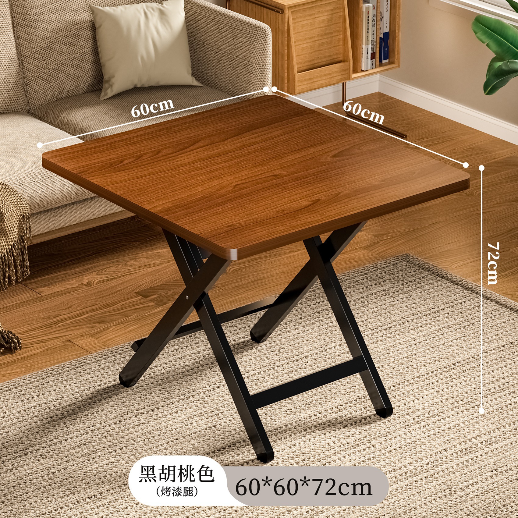 • [업그레이드 모델] 블랙월넛 컬러 60*60*50 [두꺼운 데스크탑-블랙 페인트 다리]⚑