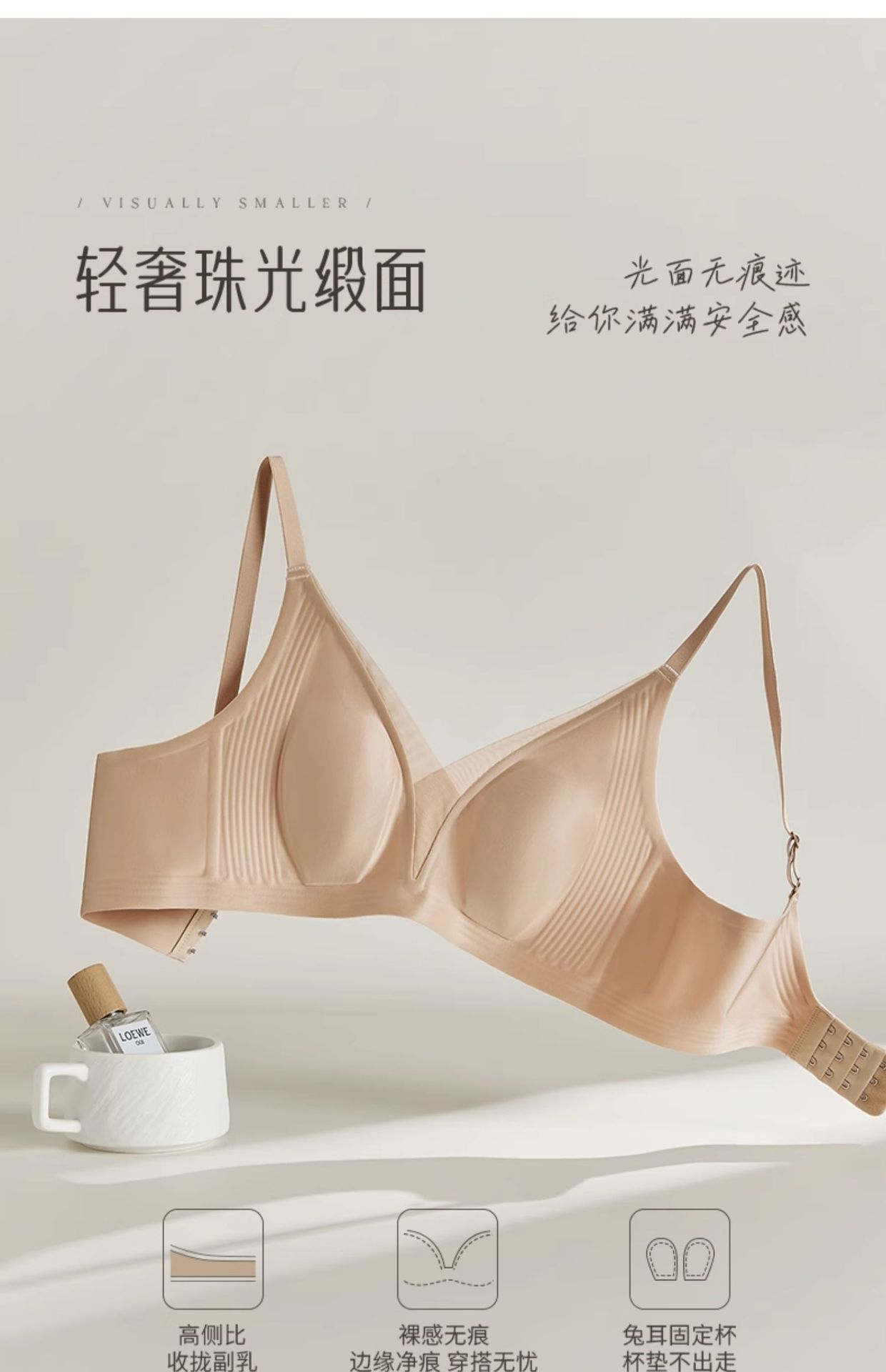 브랜드의 초박형 무봉제 리퀴드 파운데이션 속옷, 큰 가슴을 가진 여성을 위한 토끼 귀 컵 처짐 방지 새틴 아름다운 등 브라스토어 가기