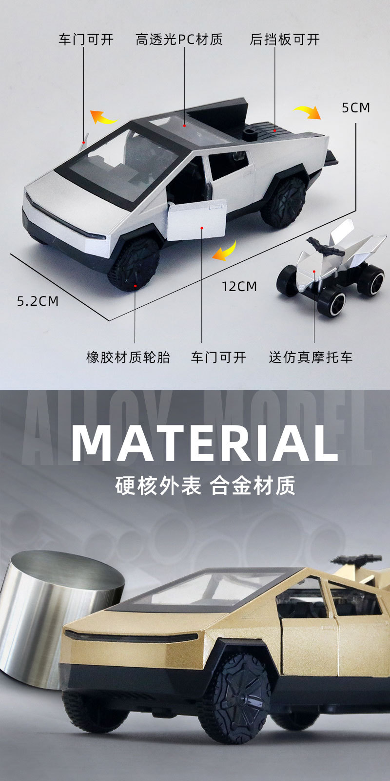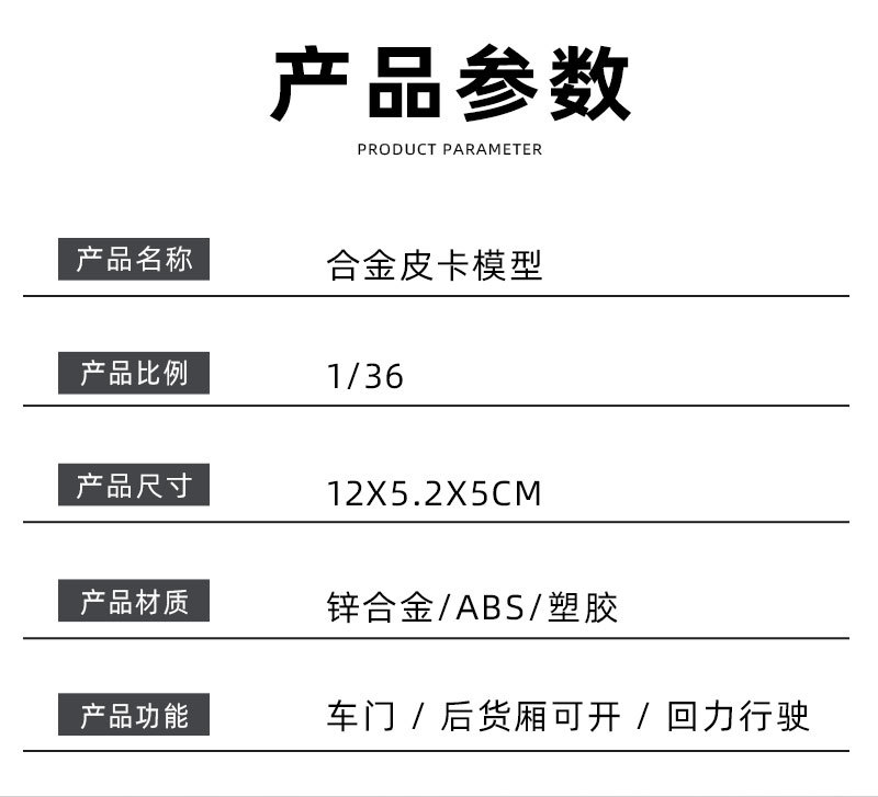 1/36 합금 시뮬레이션 특수 픽업 트럭 모델 어린이 금속 자동차 장난감 작은 오토바이로 문을 열고 뒤로 당겨보세요