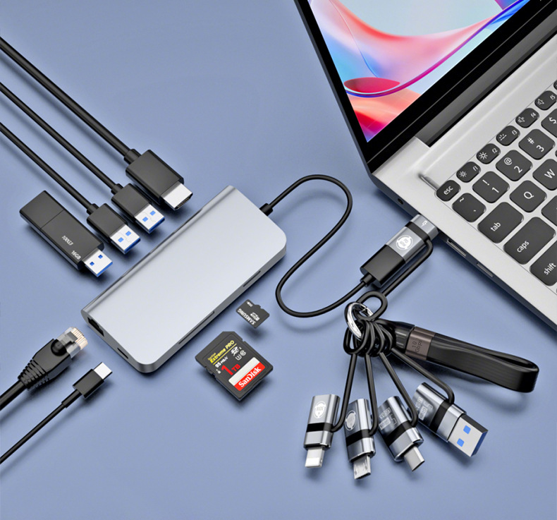 USB3.0 5-in-1 어댑터는 Android Apple PTYE-C 인터페이스 컴퓨터, 휴대폰 및 태블릿에 적합하며 완벽하게 호환됩니다.스토어 가기