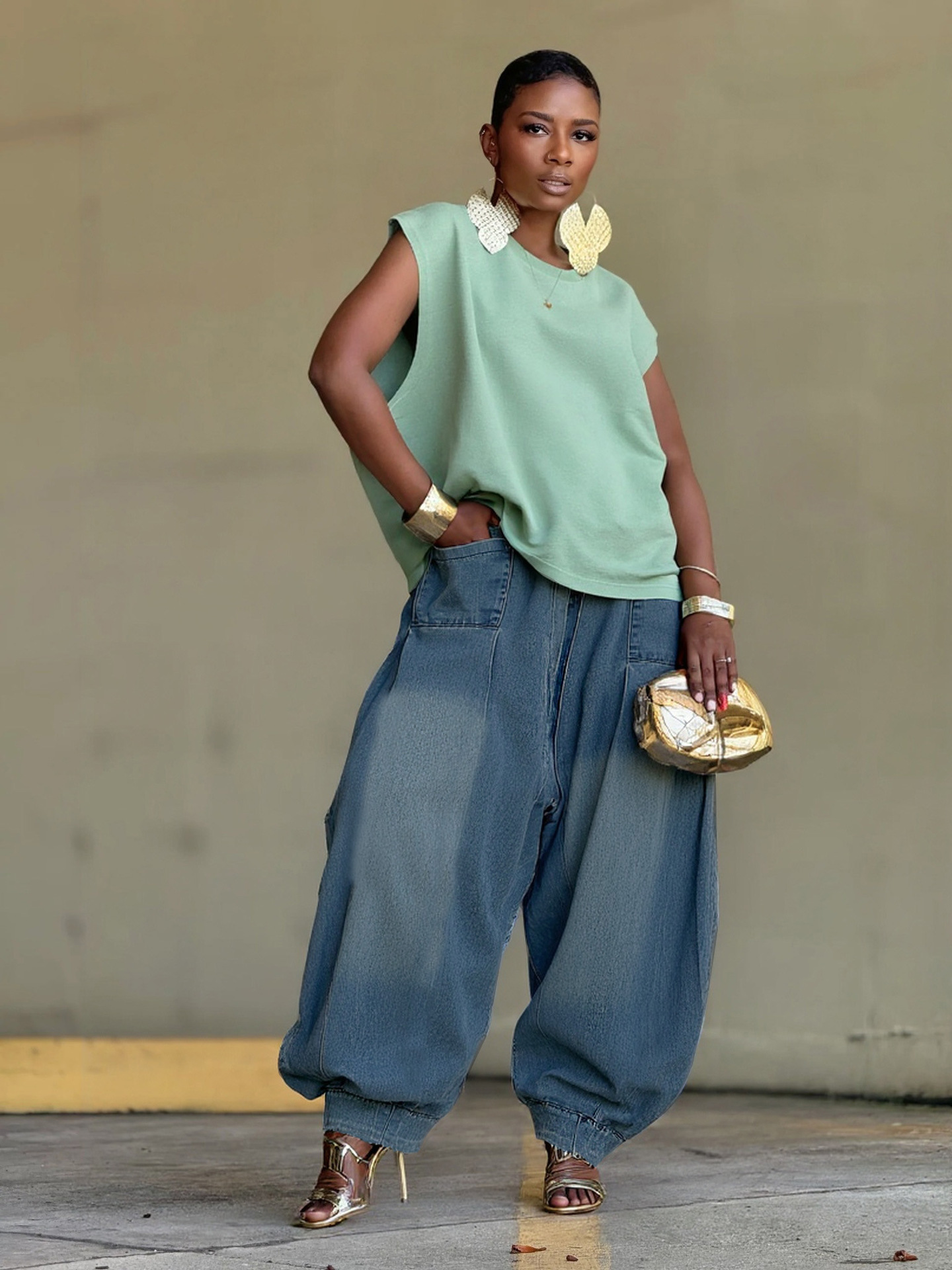 YLN6078 크로스보더 독립 스테이션 Amazon 2025 새로운 루즈한 하렘 와이드 레그 랜턴 여성 청바지