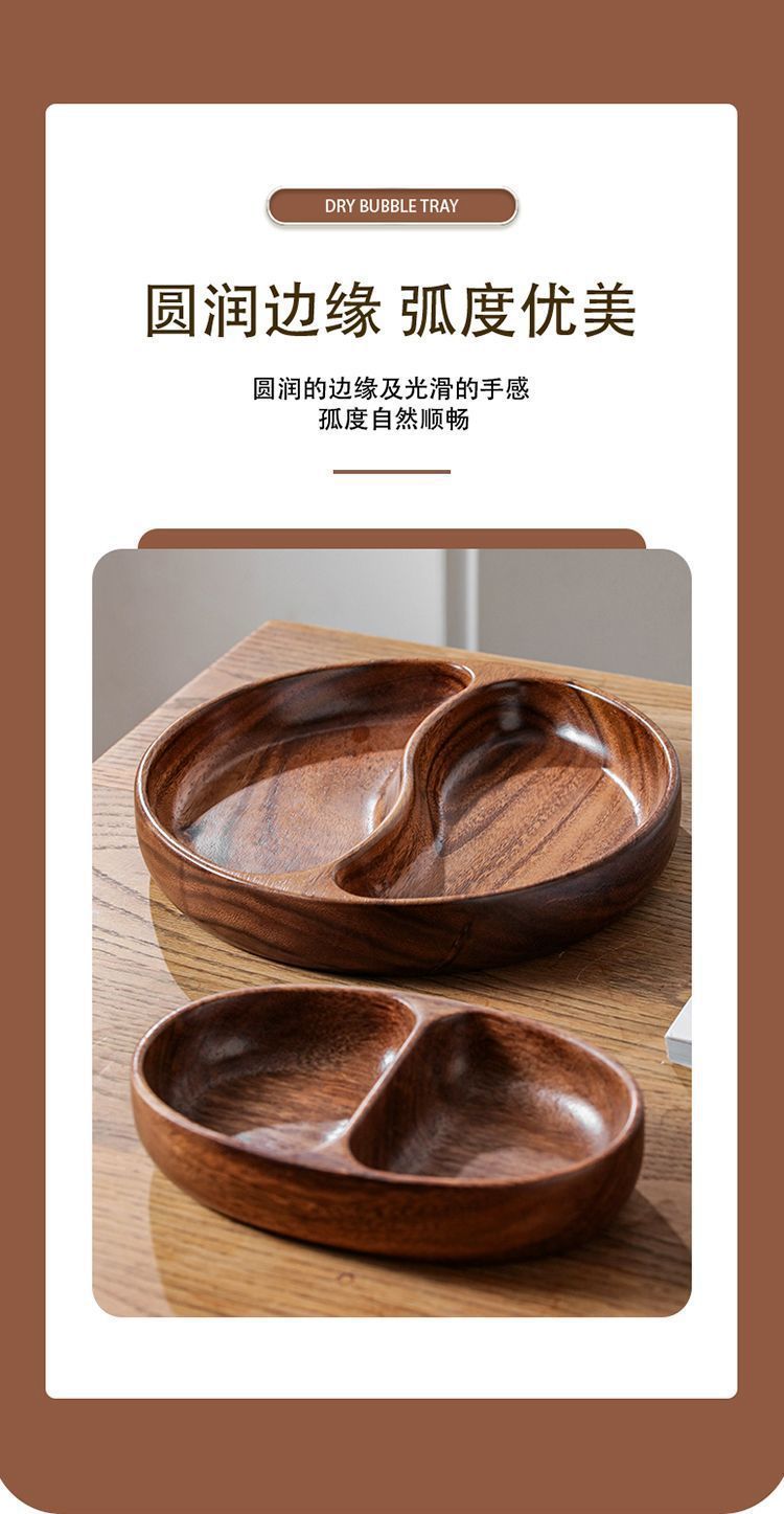 흑단 가정용 원형 과일 그릇 간단한 거실 전체 나무 접시 중국 스타일 단단한 과일 그릇 더블 그리드 과일 접시 트레이