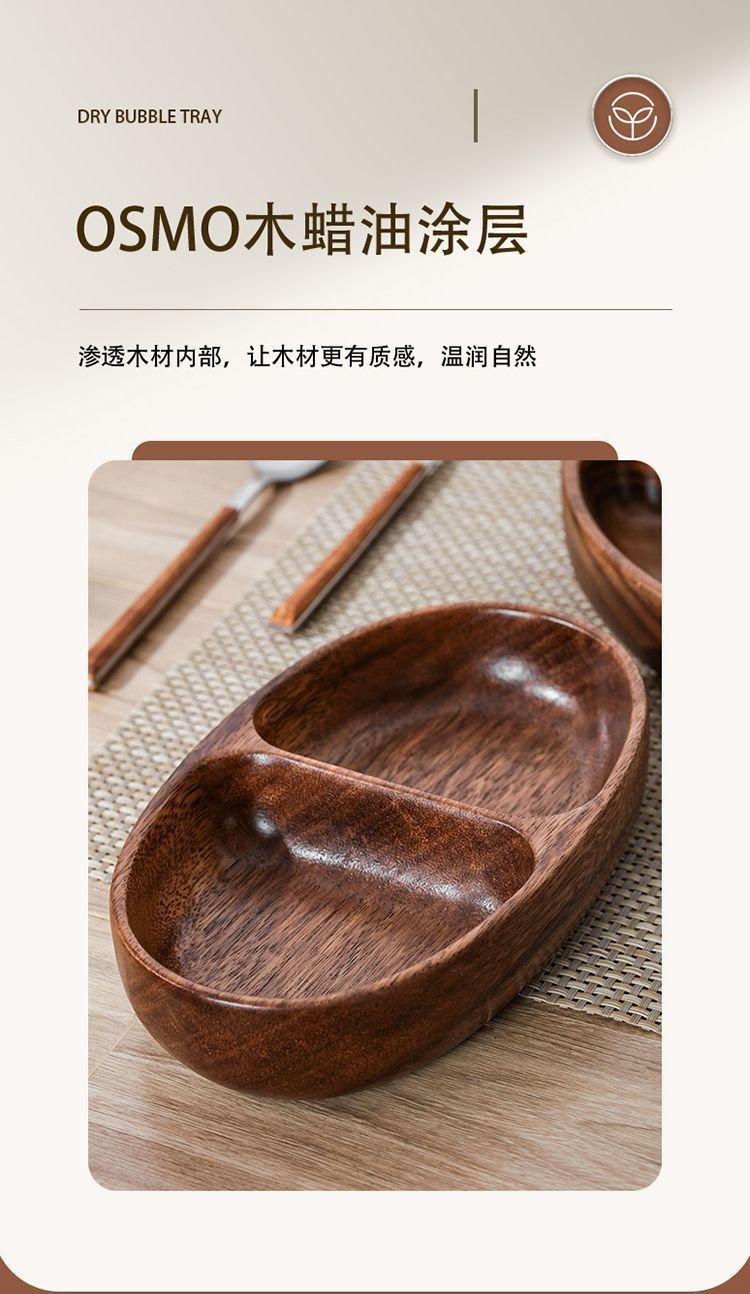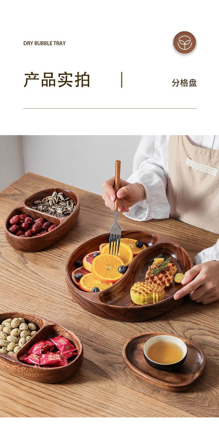 흑단 가정용 원형 과일 그릇 간단한 거실 전체 나무 접시 중국 스타일 단단한 과일 그릇 더블 그리드 과일 접시 트레이스토어 가기