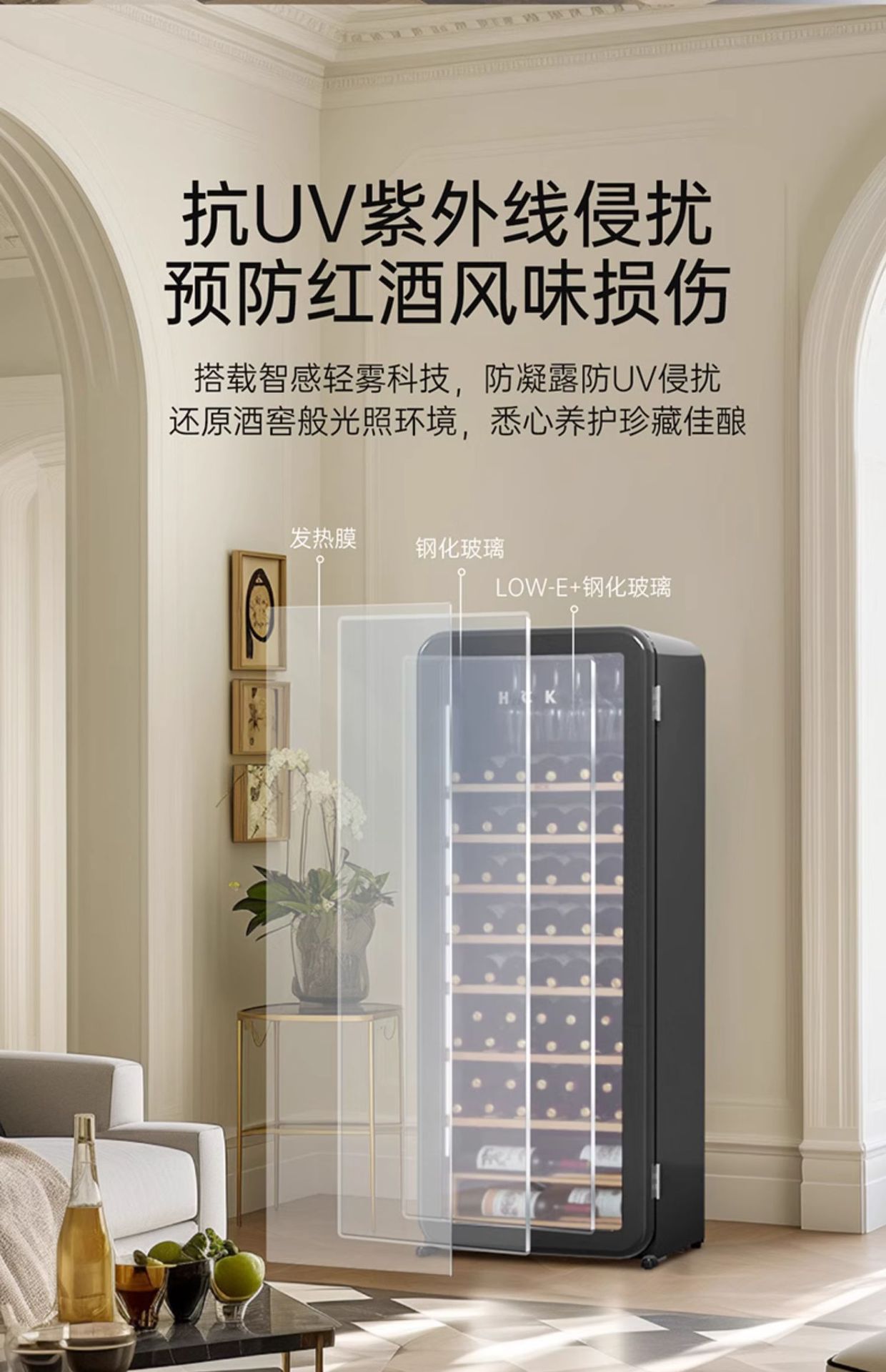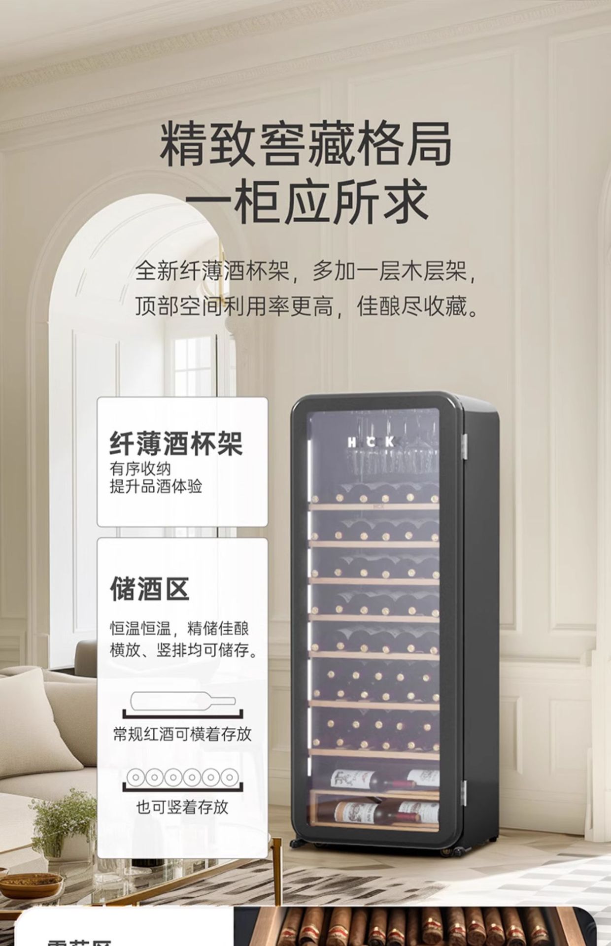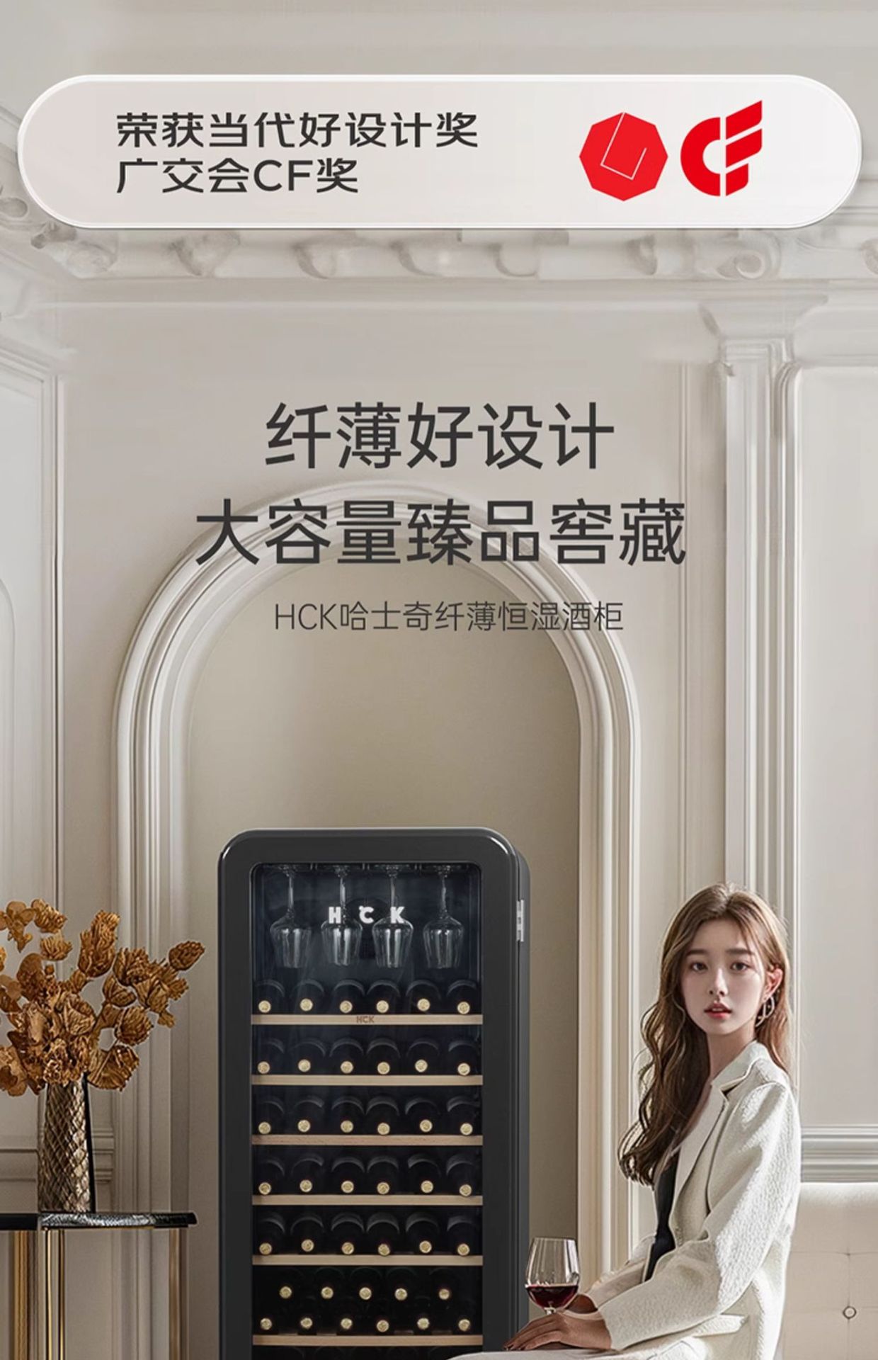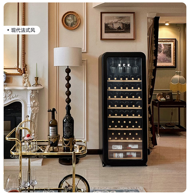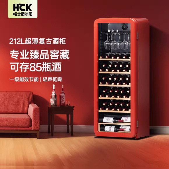 HCK Husky 208R 아크 레드 와인 캐비닛 76 병 일정한 온도 내장 거실 초박형 냉장 아이스 바 음료 냉장고스토어 가기