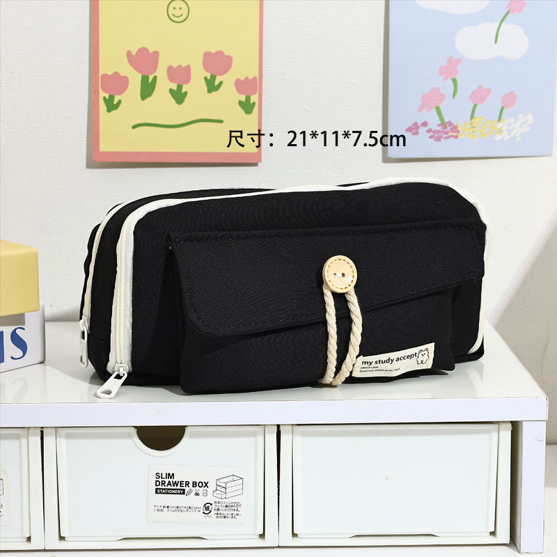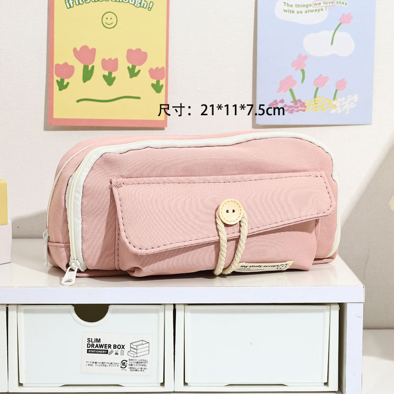 일본 단추 연필 가방 대용량 연필 상자 초등학교 중학생 ins 간단한 문구 상자 고등학생 문구 가방