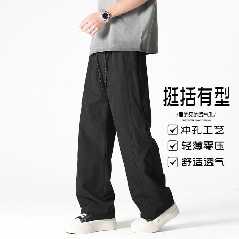 여름 남성용 얇은 아이스 실크 캐주얼 바지, 방수 스포츠 트렌디, 다용도, 편안하고 통기성이 뛰어난 레깅스 스트레이트 레그 바지