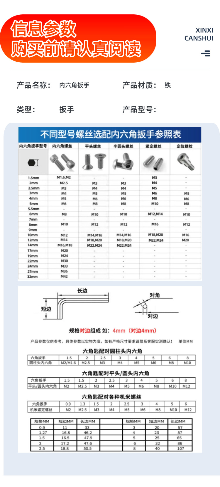 육각 렌치 1.5~22mm 육각 렌치 L형 육각 렌치 7자 렌치 강화 아연 도금 니켈 도금스토어 가기