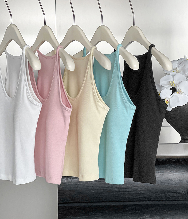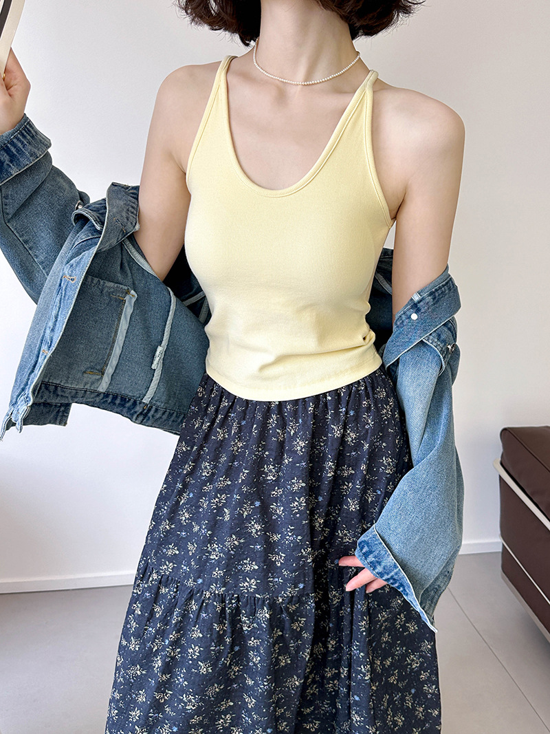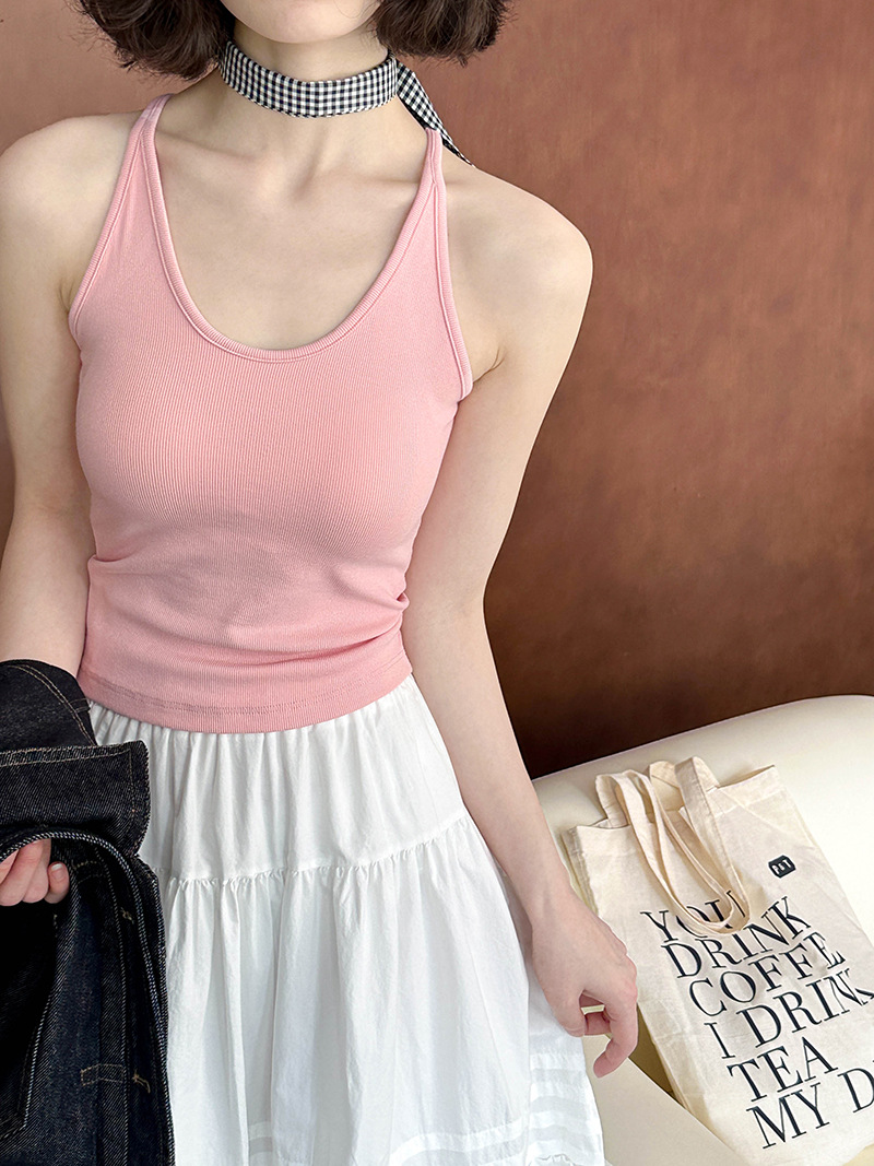 Juzhi 봄 신상 한국식 캔디 컬러 하이엔드 생기 작은 서스펜더 이너웨어 및 아우터 조끼 588-1