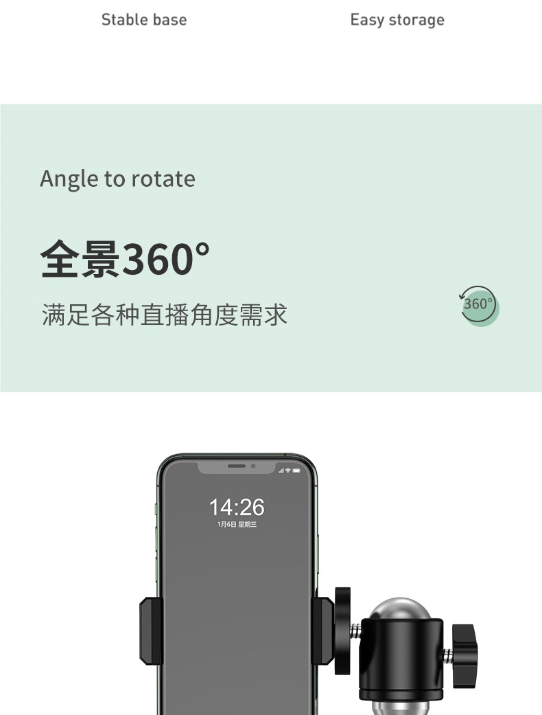 • 1.7m [업그레이드된 합금 브래킷] 조명 10inch개 + 카메라 위치 4개 + 셀카 + 보관 가방