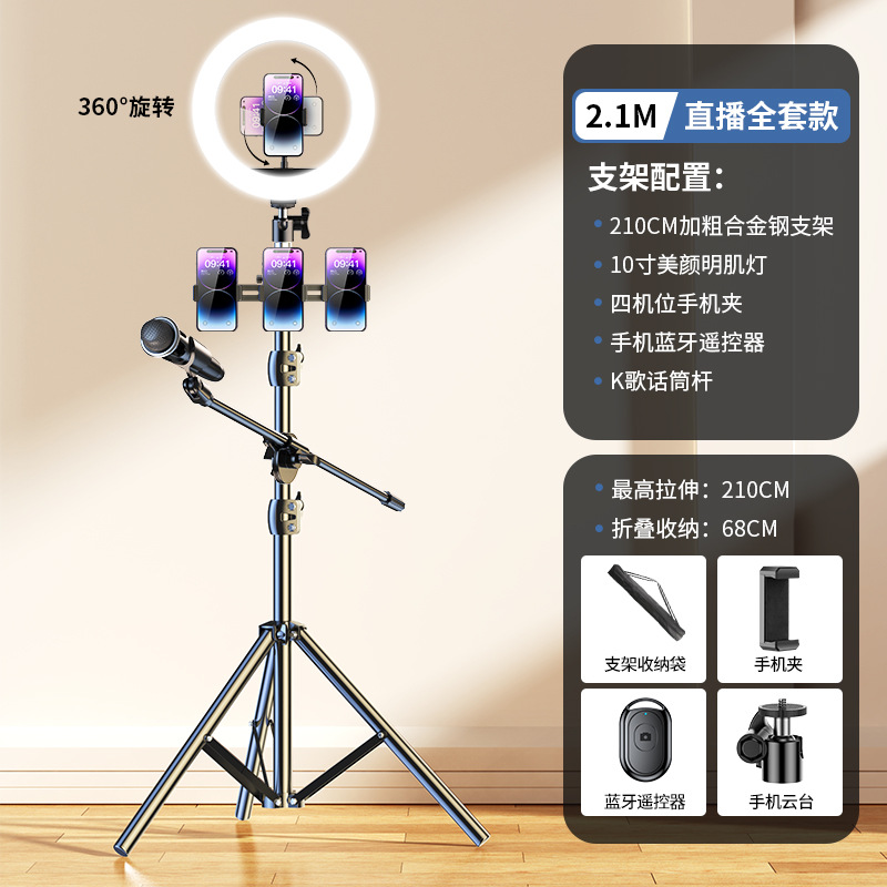 • 2.1m [업그레이드된 합금 스탠드] 10inch 조명 + 마이크 스탠드 + 카메라 위치 4개 + 셀카 + 보관 가방