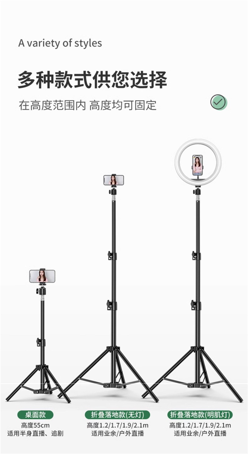 휴대폰 홀더, 라이브 방송 셀카봉, 사진 촬영용 보조광이 있는 삼각대, 삼각형 지지대 2024 새로운 스타일스토어 가기