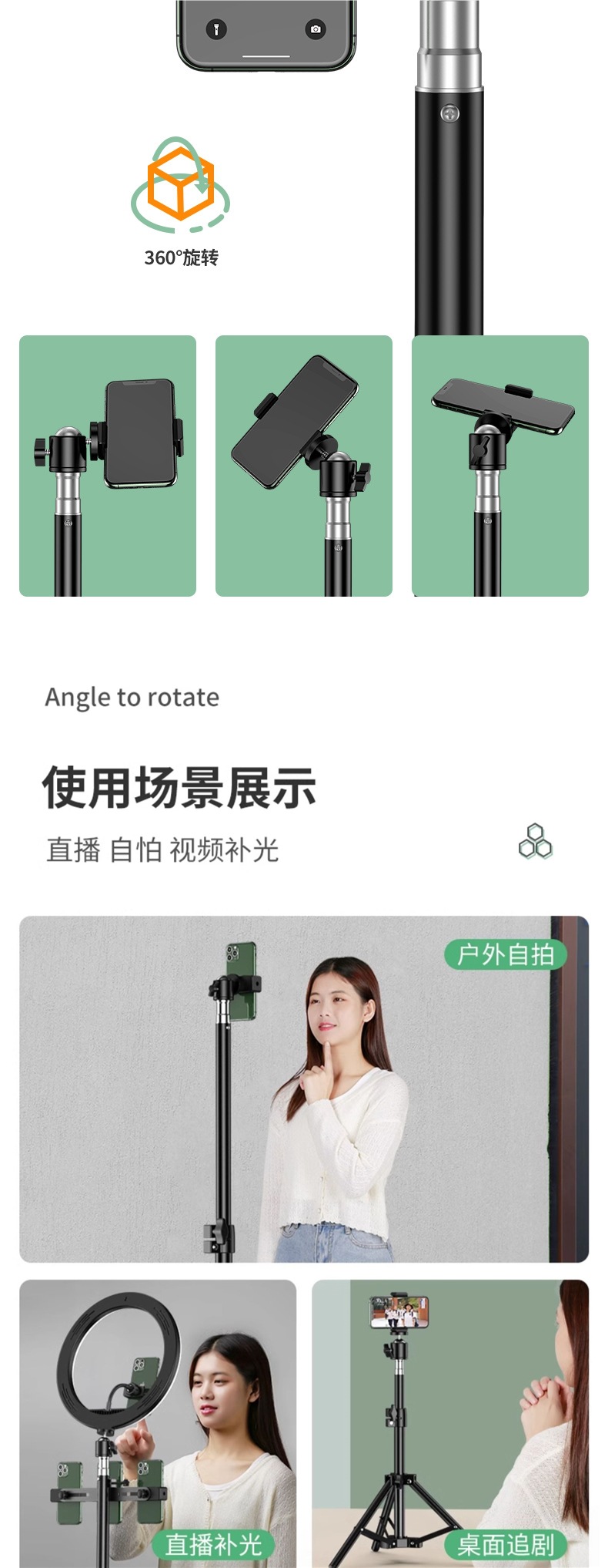 • 2.1m [업그레이드된 합금 스탠드] 카메라 위치 4개 + 셀카 + 보관 가방