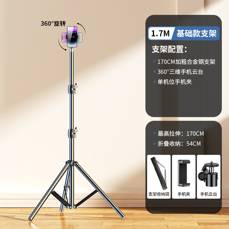 • 1.7m [업그레이드된 합금 스탠드] 셀카 + 싱글 카메라 + 수납가방