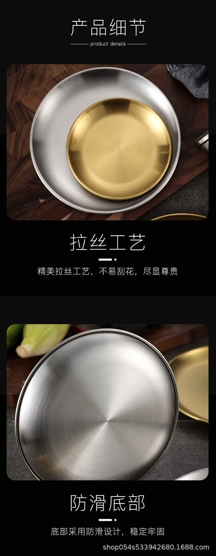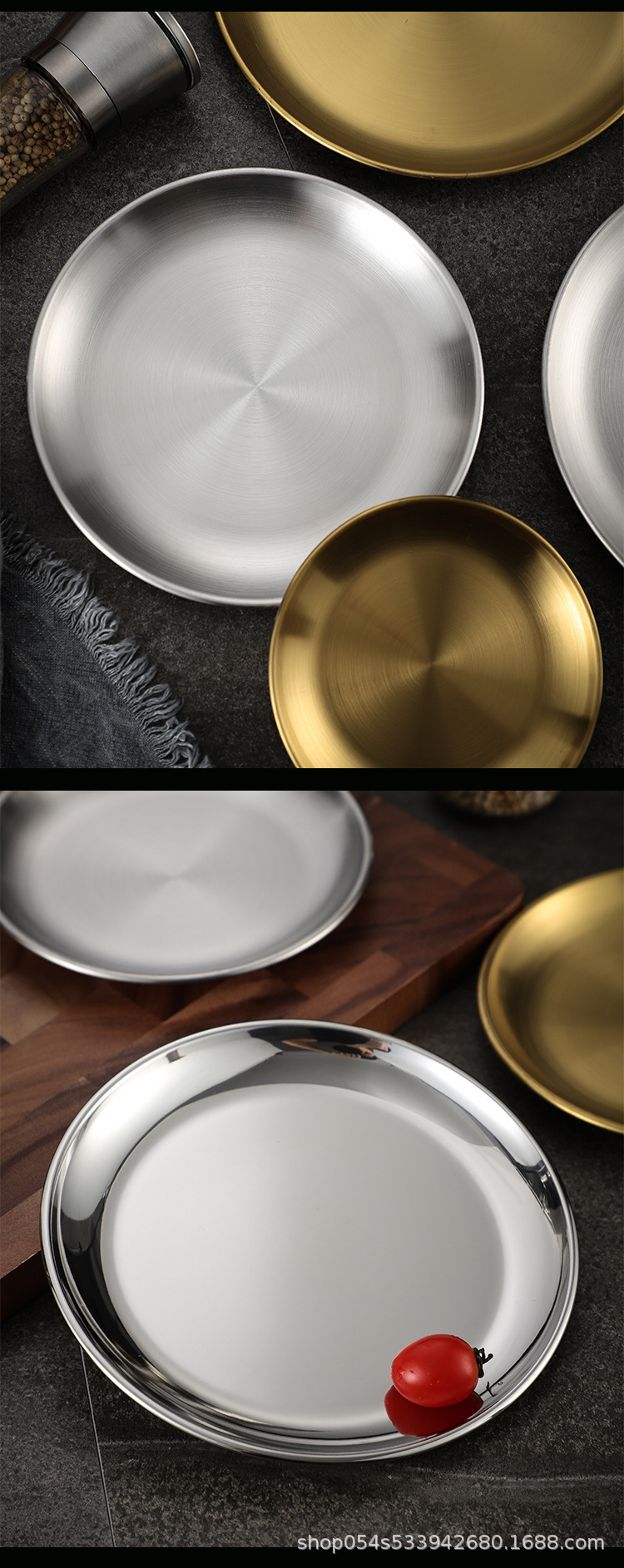 304 한국 스테인레스 스틸 스타일 바베큐 금속 트레이 인터넷 연예인 디저트 과일 접시 두꺼운 원형 접시 뱃살 접시스토어 가기