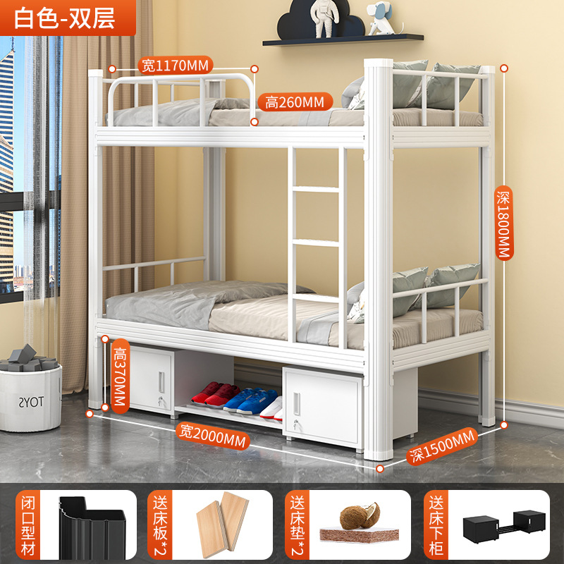 두꺼운 이층 침대, 이층 철제 프레임 침대, 학교 학생 기숙사, 더블 침대, 아파트 건설 현장 직원의 높고 낮은 프레임 침대