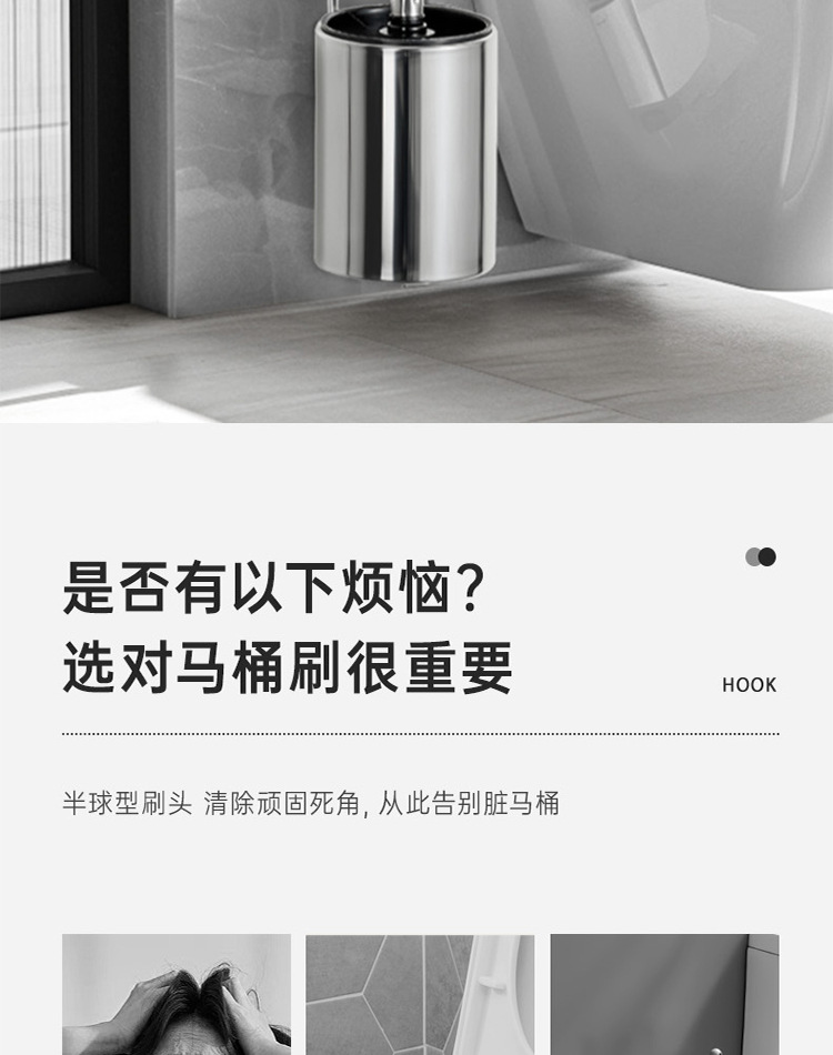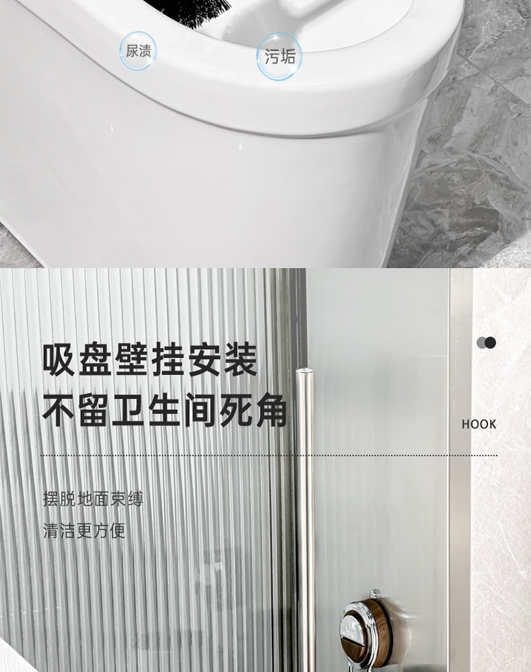 화장실 브러시는 가볍고 고급스러운 벽걸이형 이중 흡입 컵 화장실 브러시 욕실 가정용 사각지대 없는 스테인레스 스틸 청소 브러시입니다.