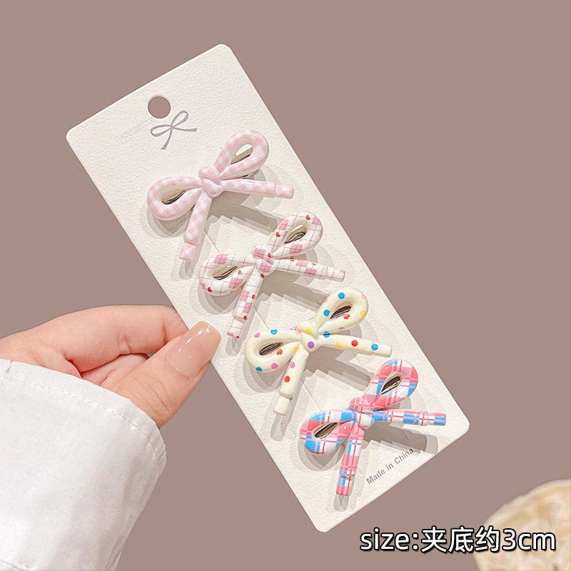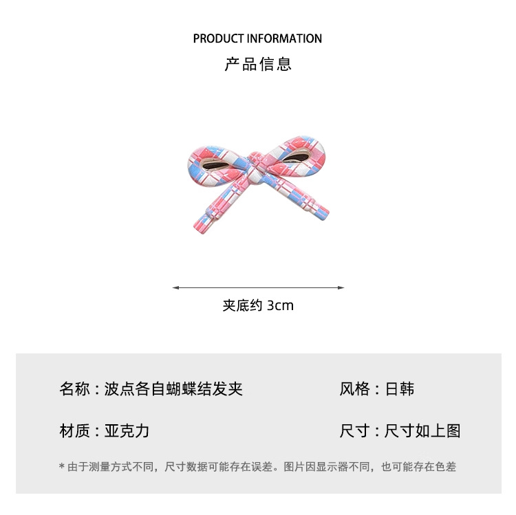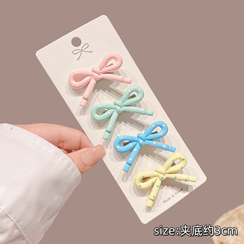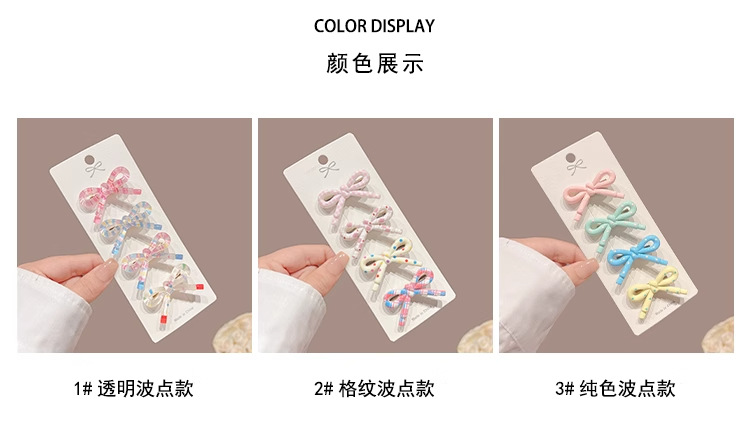 한국식 머리핀, 심플한 물방울 무늬 핑크 리본, 덕빌인 앞머리, 다용도 어린이 틈새 모자 머리핀