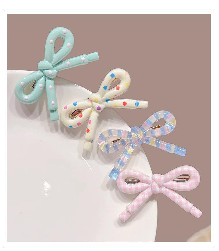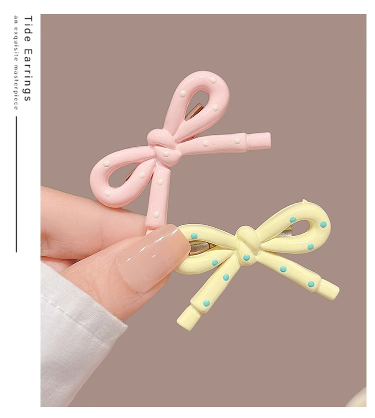 한국식 머리핀, 심플한 물방울 무늬 핑크 리본, 덕빌인 앞머리, 다용도 어린이 틈새 모자 머리핀스토어 가기