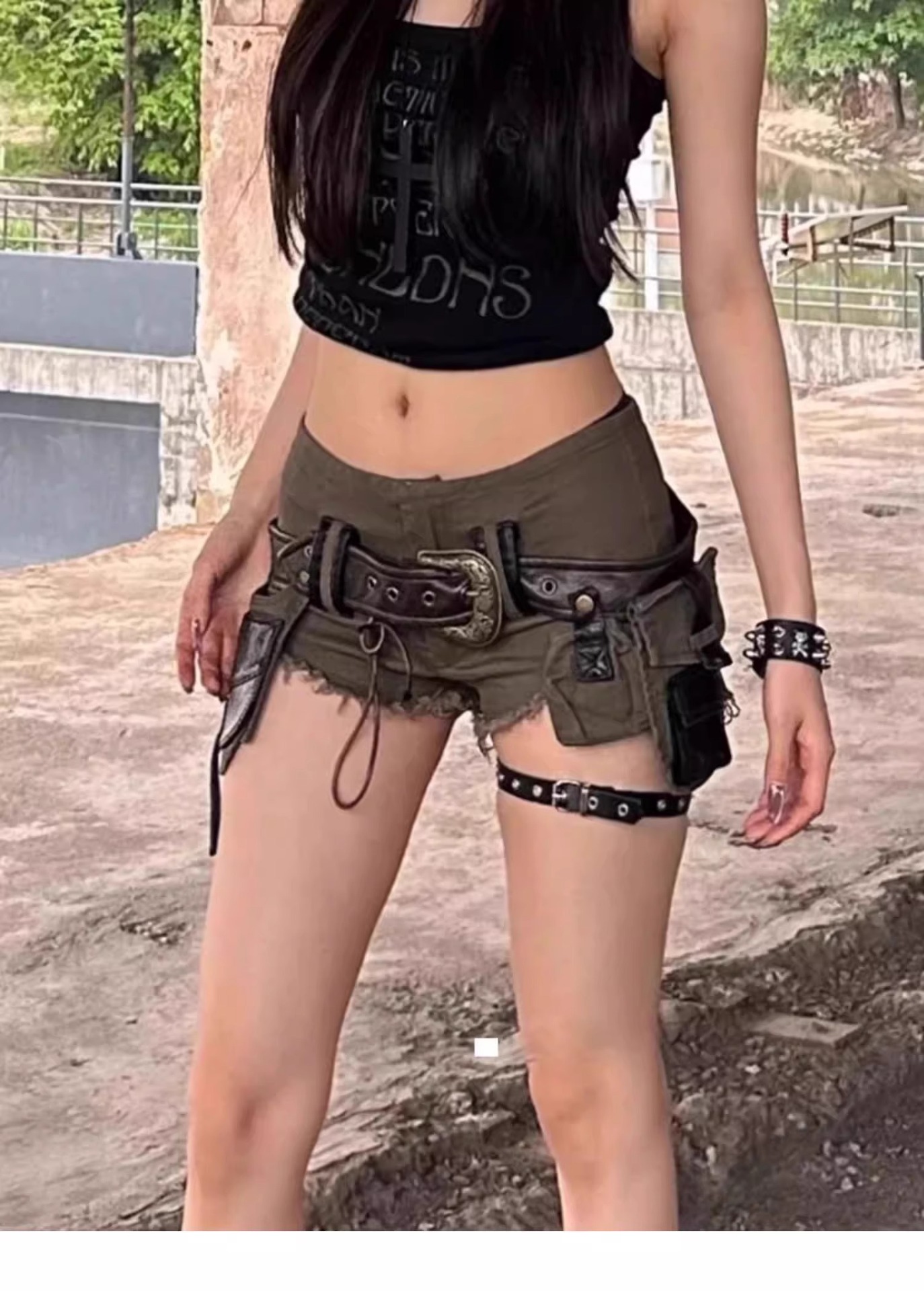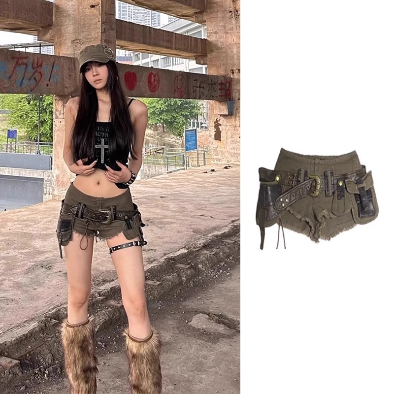미국 레트로 밀리터리 그린 데님 반바지 여성 여름 신상 헤비웨이트 핫걸 디자인 로우 엣지 핫팬츠스토어 가기